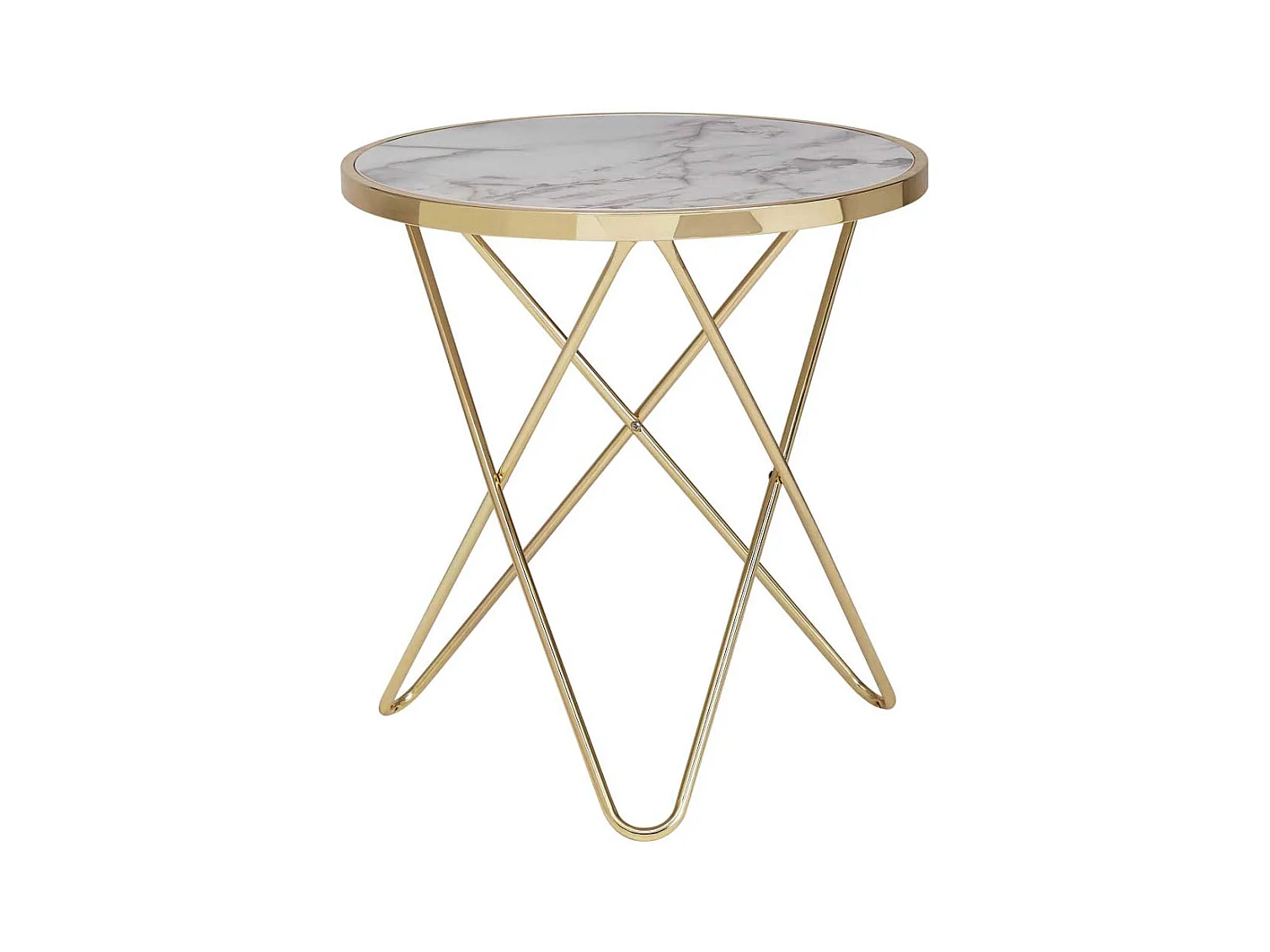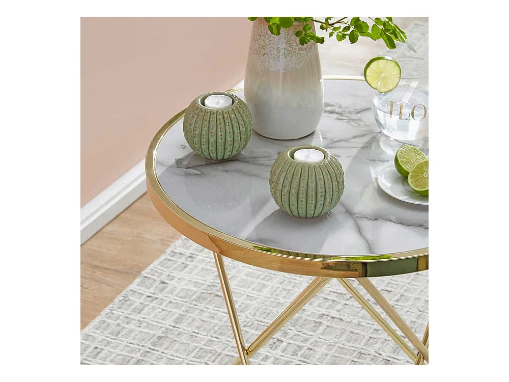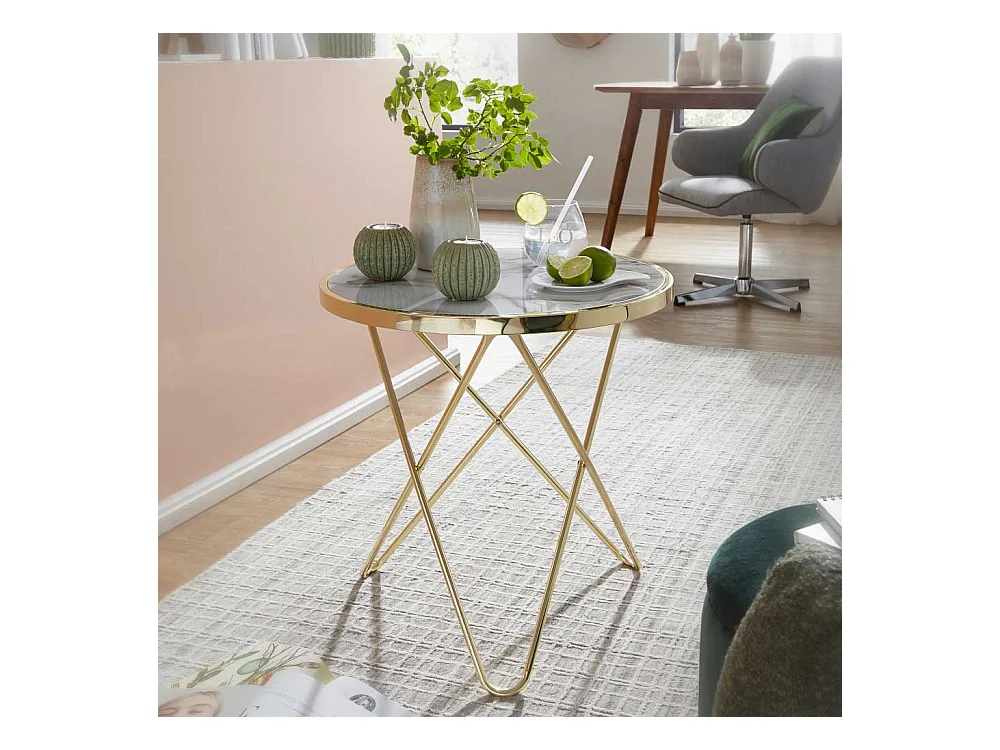 Couch Beistelltisch in Goldfarben und Marmor Optik rund
