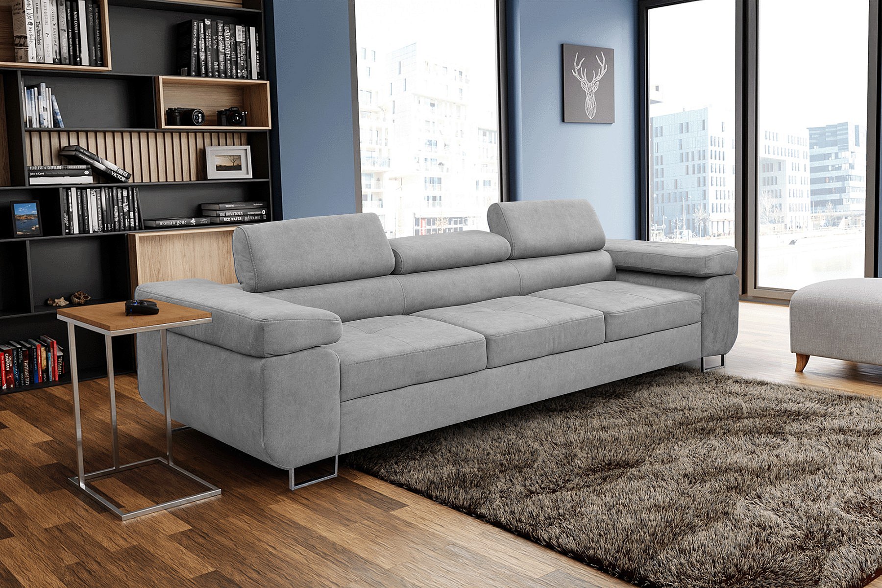Couch Marlene mit verstellbaren Kopfstützen 274 x 97 cm, Schlaffunktion Wohnzimmersofa 3 Sitzer Freistehendes Polstersofa Sofa, hellgrau