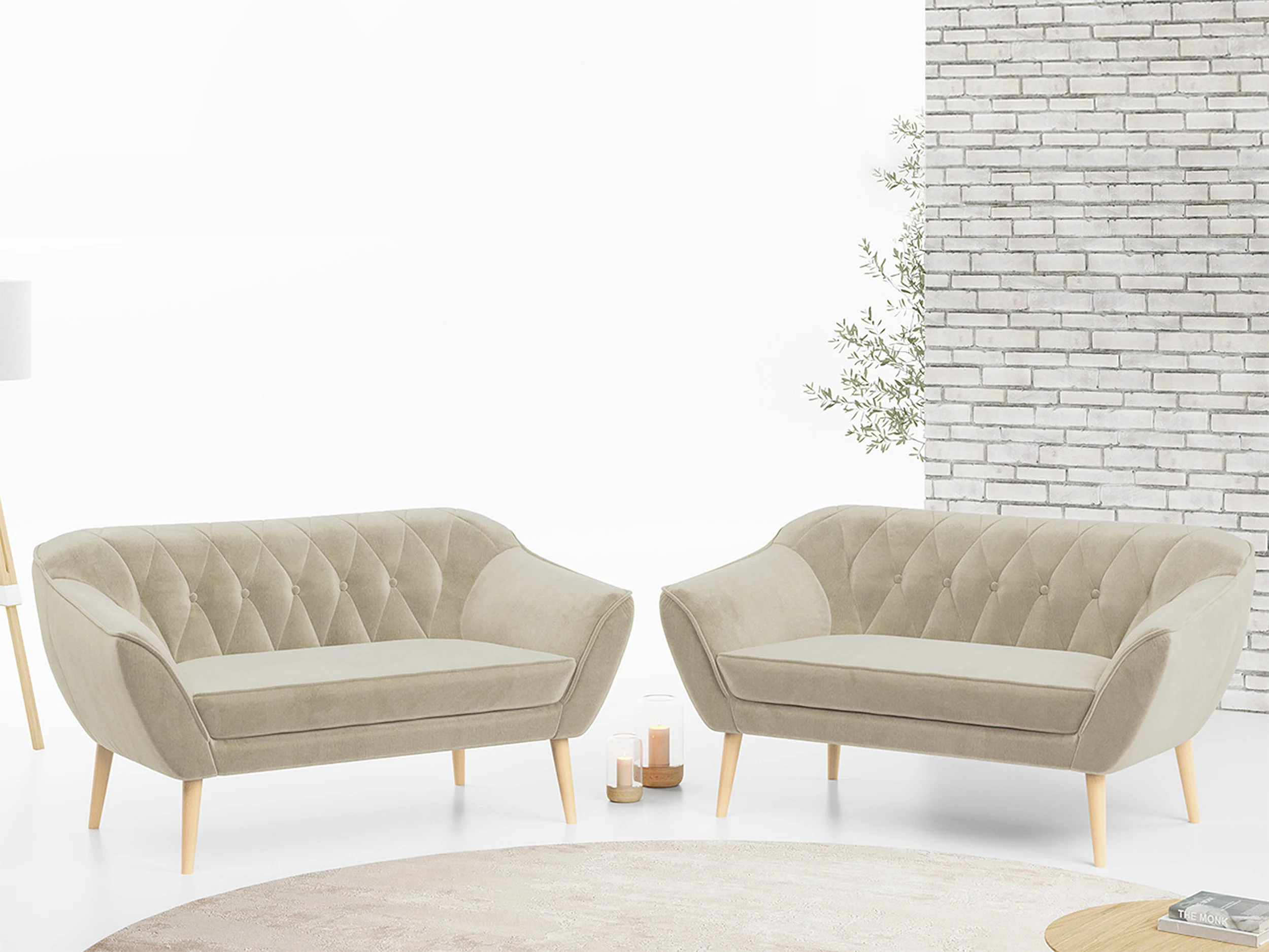 Couchgarnitur PIRS - 2+2, Skandinavischer Set mit Armlehnen, Holzbeine - Beige Velvet