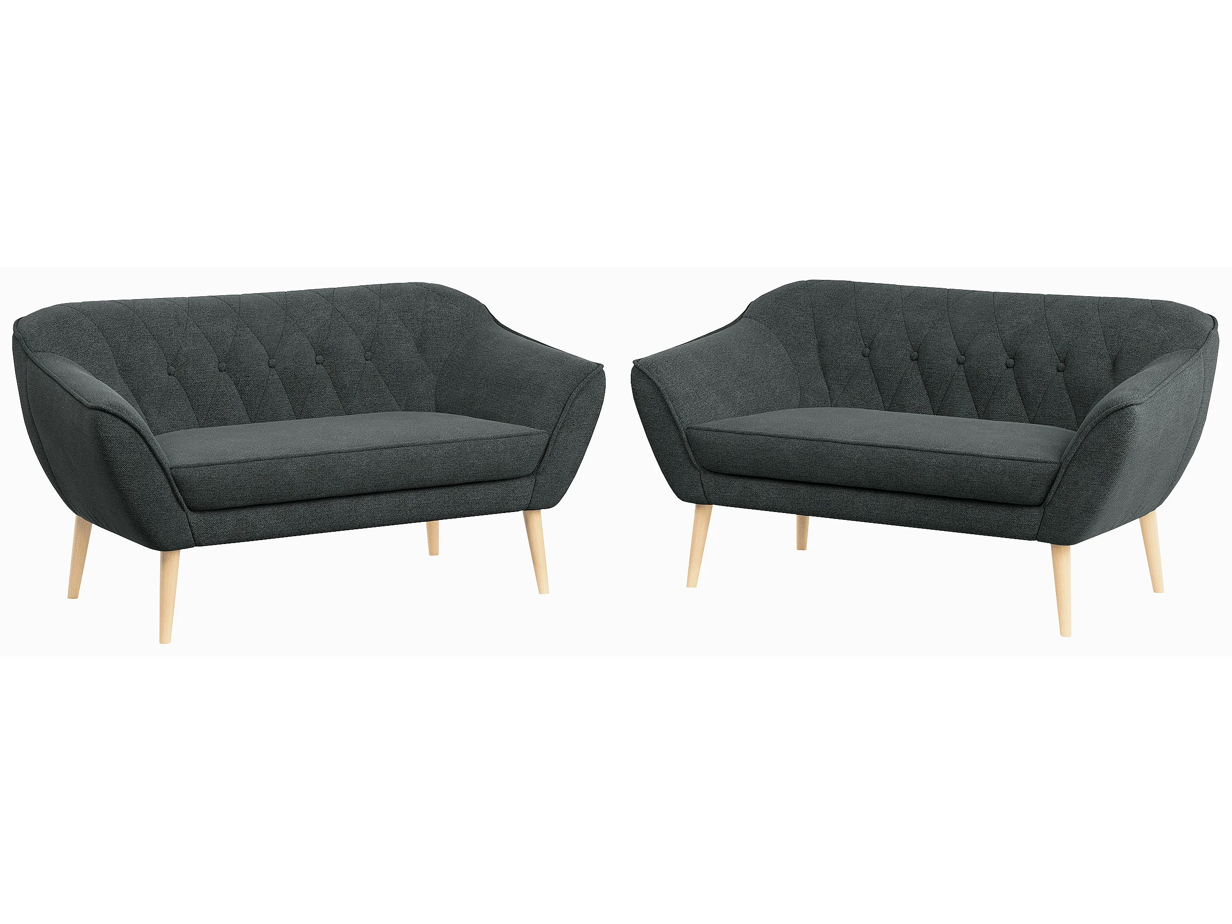Couchgarnitur PIRS - 2+2, Skandinavischer Set mit Armlehnen, Holzbeine - Dunkelgrau Stukture