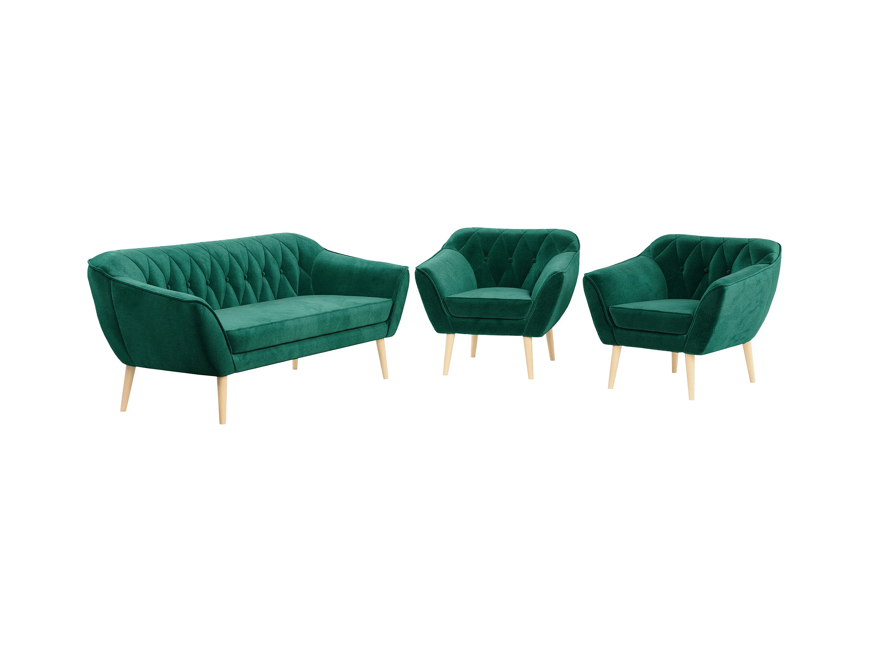 Couchgarnitur PIRS - 3+1+1, Armlehnen,Skandinavischer Design, 3-Sitzer Sofa mi Sesseln - Dunkelgrün Velvet