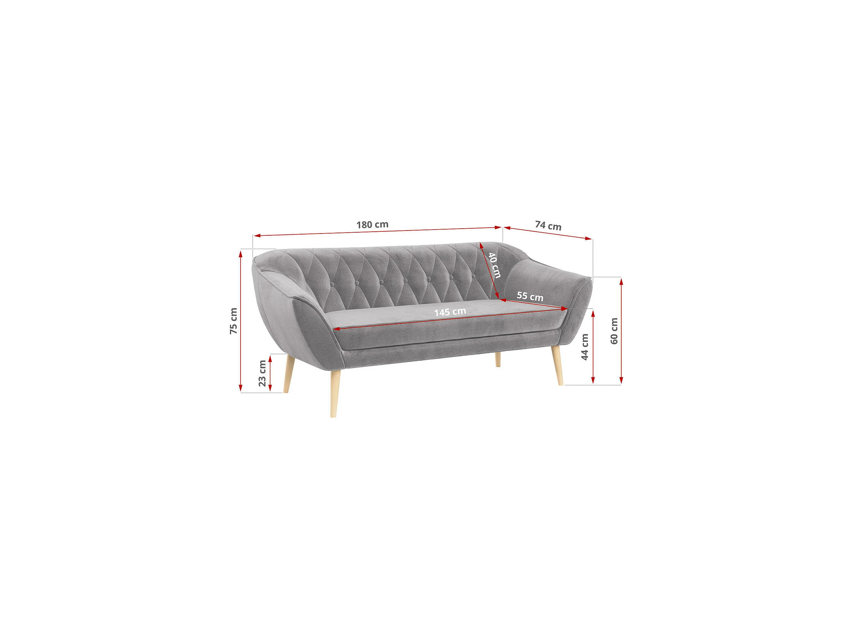 Couchgarnitur PIRS - 3+1+1, Armlehnen,Skandinavischer Design, 3-Sitzer Sofa mi Sesseln - Hellgrau Velvet