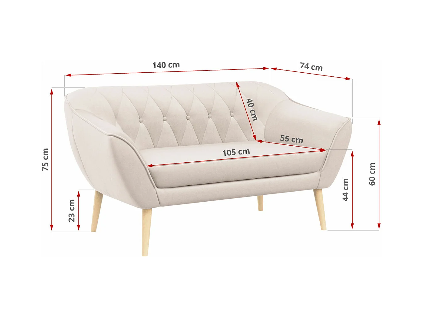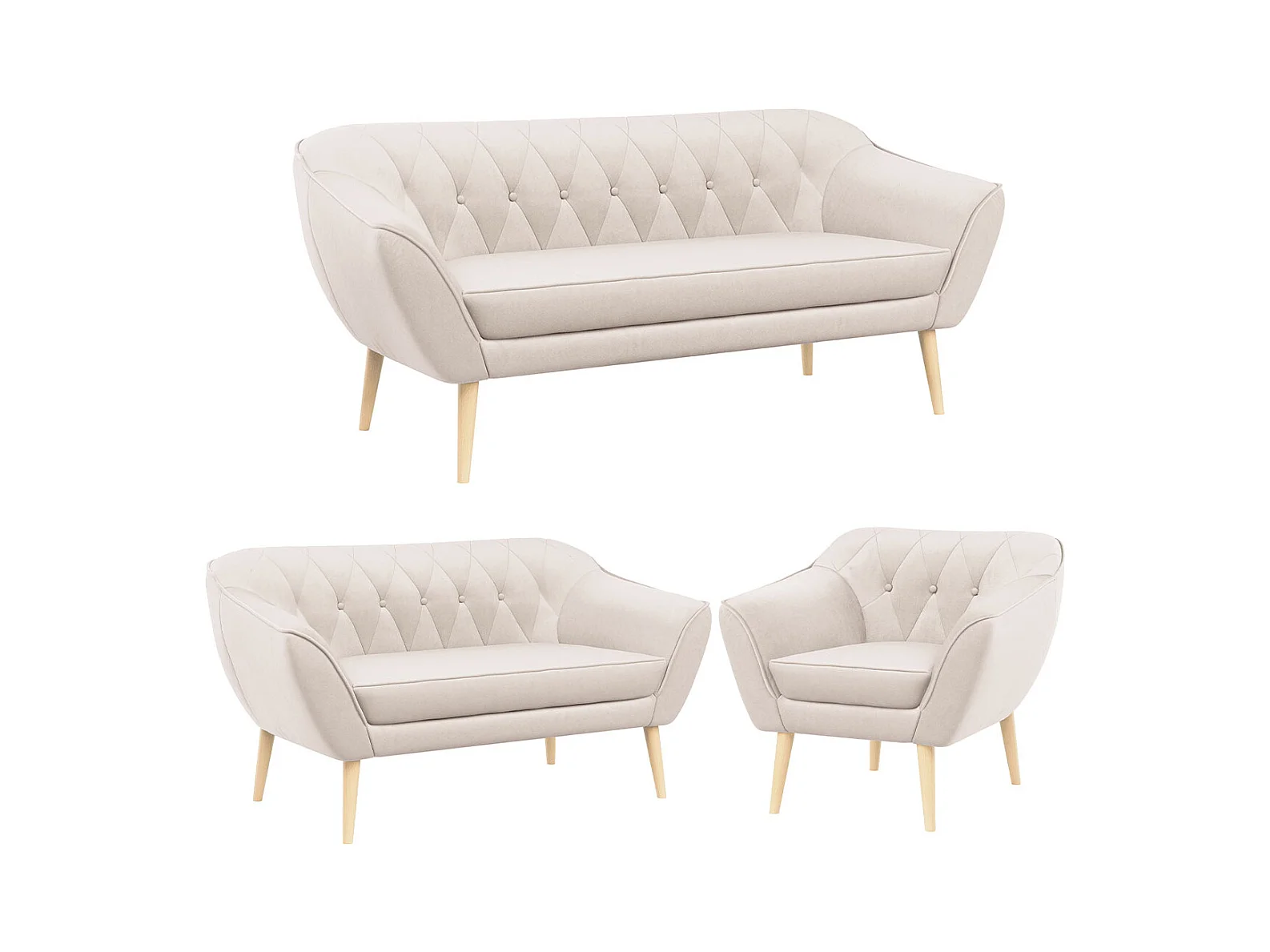 Couchgarnitur PIRS - 3+2+1, mit Armlehnen, Holzbeine, Skandinavischer Design - Creme Velvet