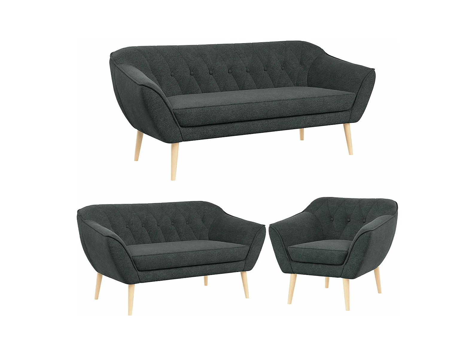 Couchgarnitur PIRS - 3+2+1, mit Armlehnen, Holzbeine, Skandinavischer Design - Dunkelgrau Stukture
