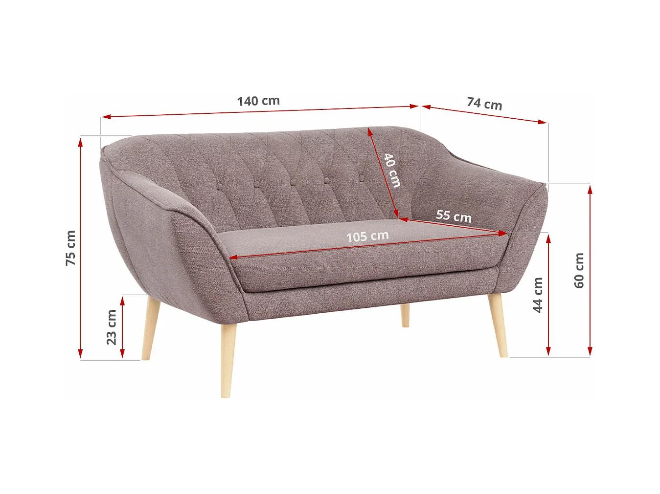 Couchgarnitur PIRS - 3+2+1, mit Armlehnen, Holzbeine, Skandinavischer Design - Rosa Stukture