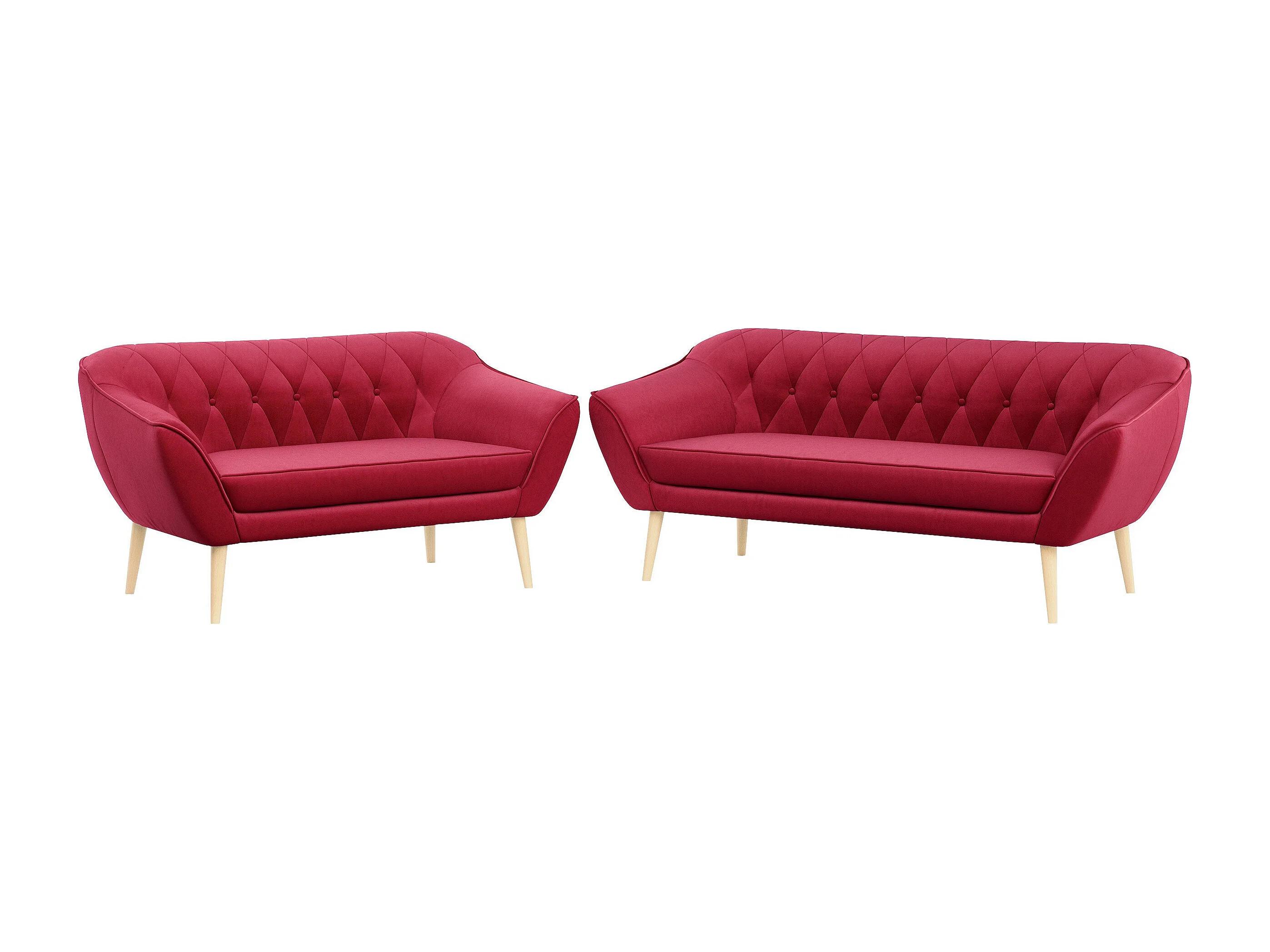 Couchgarnitur Set PIRS - 3+2, Skandinavischer Design, Holzbeine - Rot Velvet