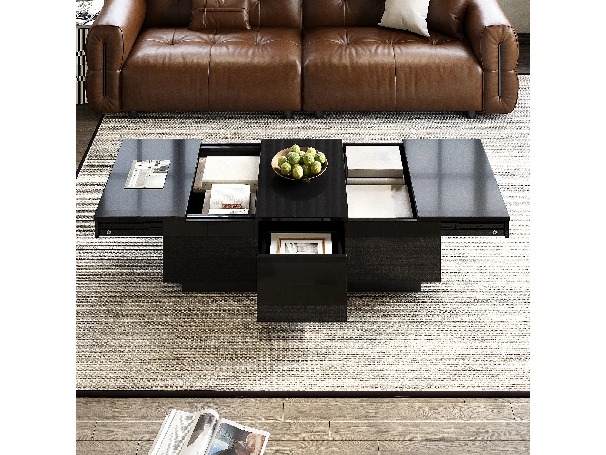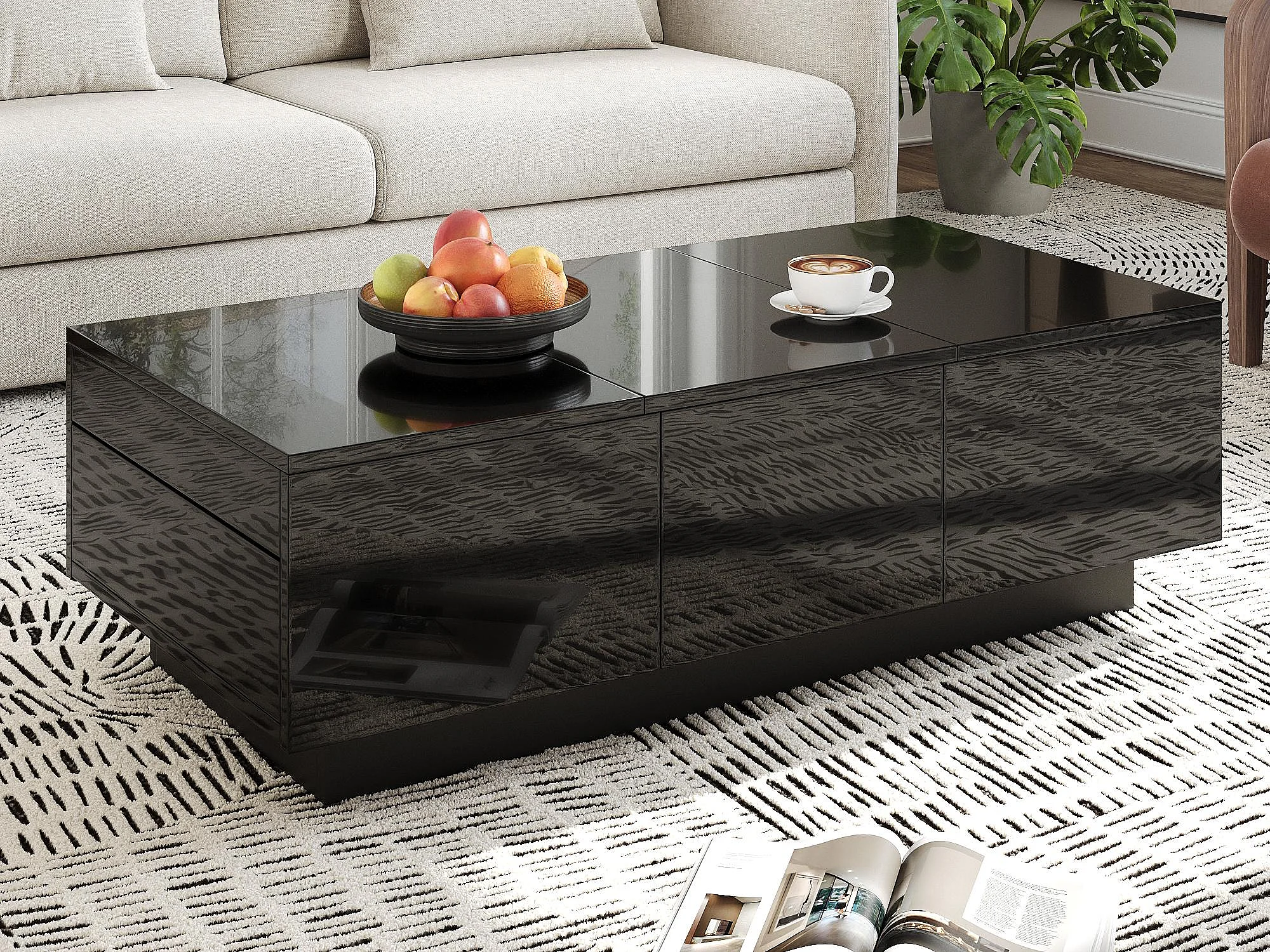 Couchtisch 100x31x50 cm - mit 2 Schubladen - Hochglanzfinish - Spanplatten - Schwarz