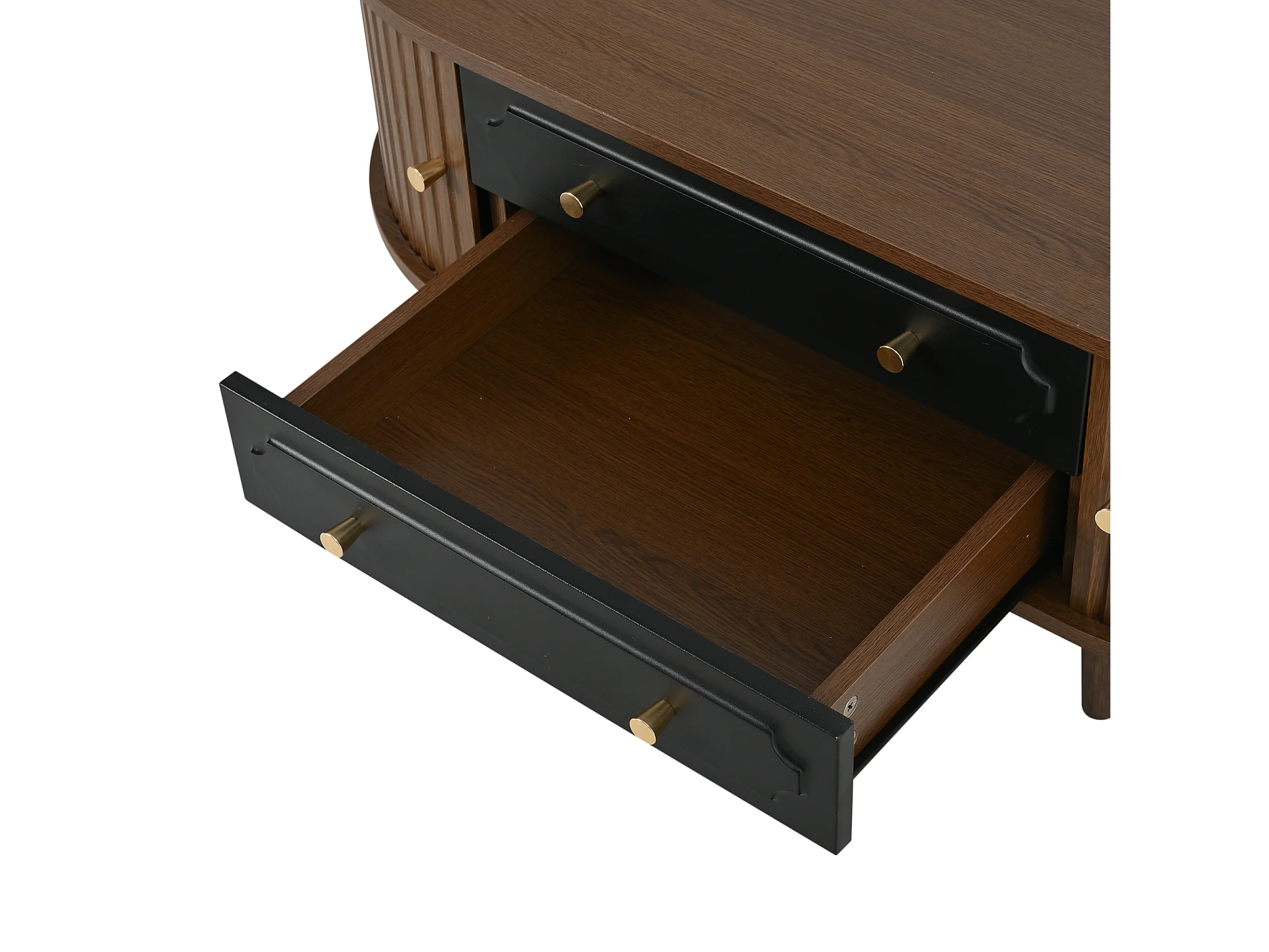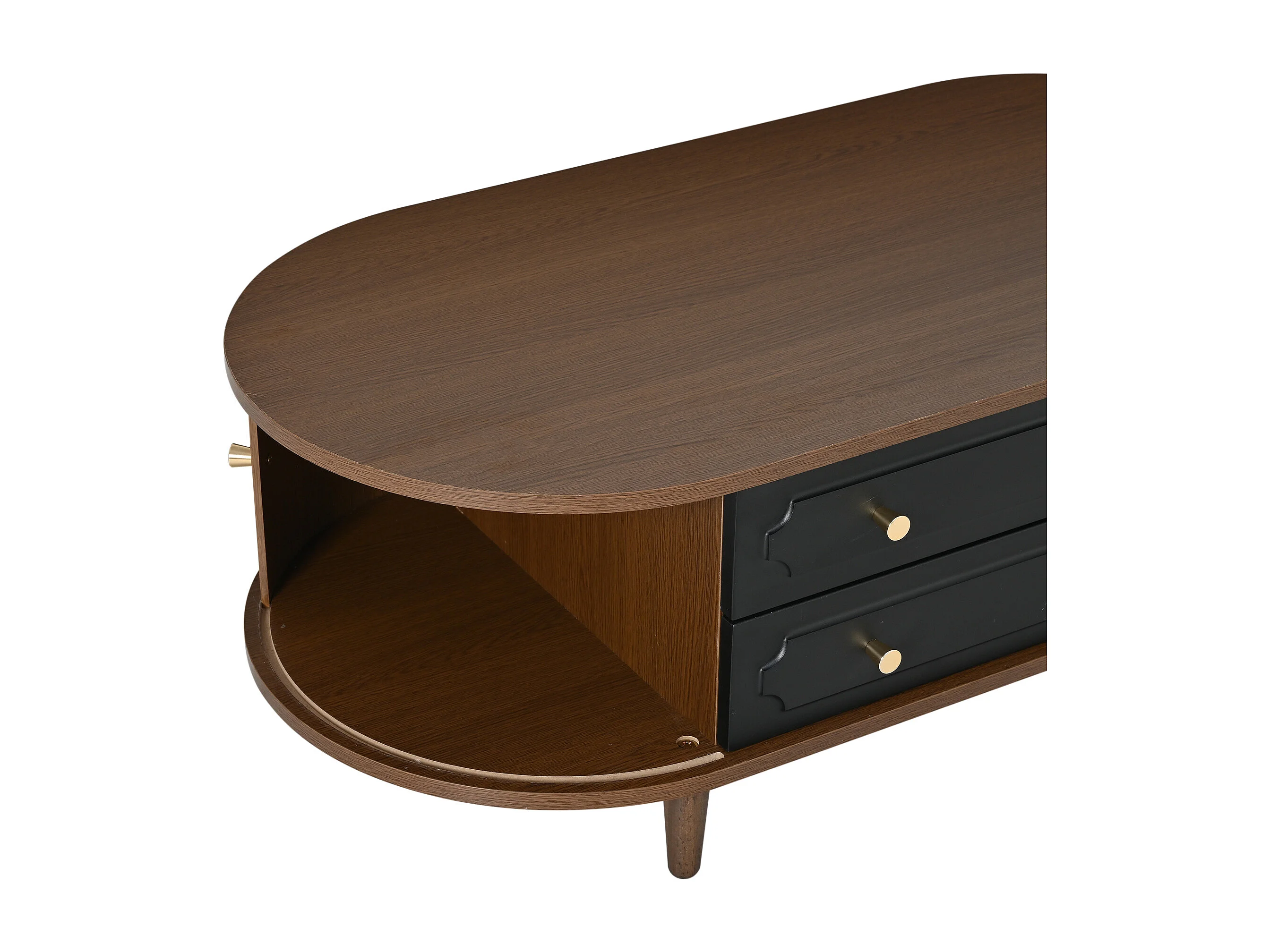 Couchtisch 100x50x36 cm - mit 2 Schubladen und 2 Schiebetüren - Braun + Schwarz