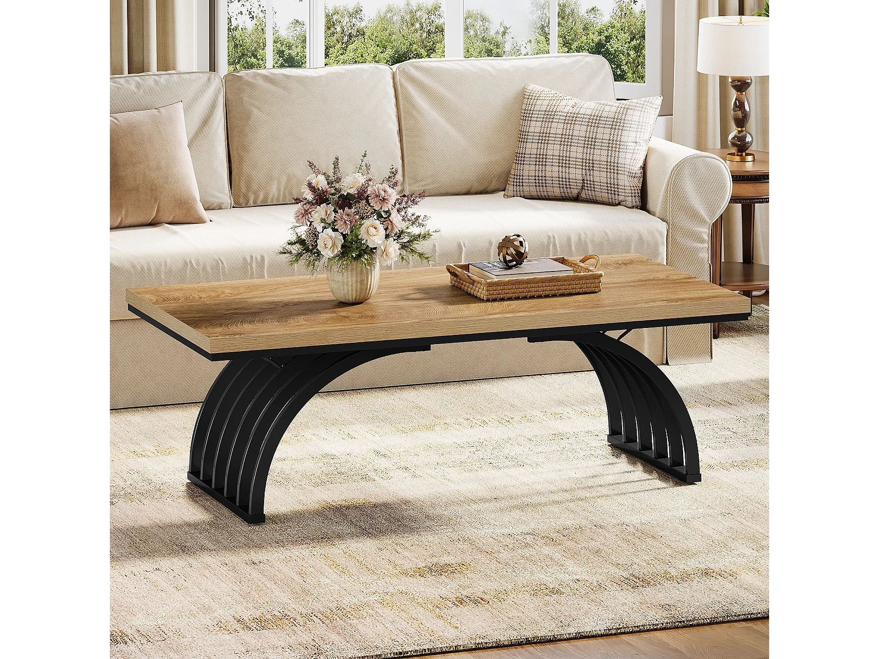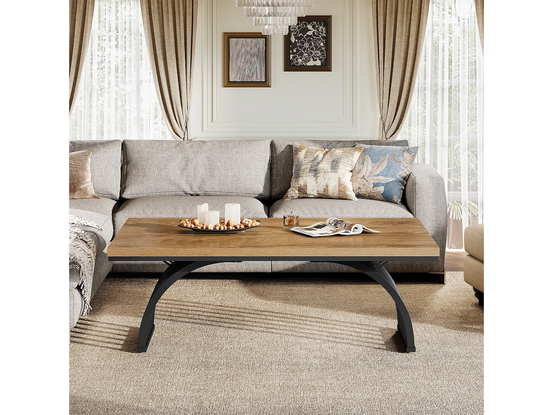 Couchtisch, 120 cm rustikaler rechteckiger Zentralterrinetisch mit Metallrahmenbeinen