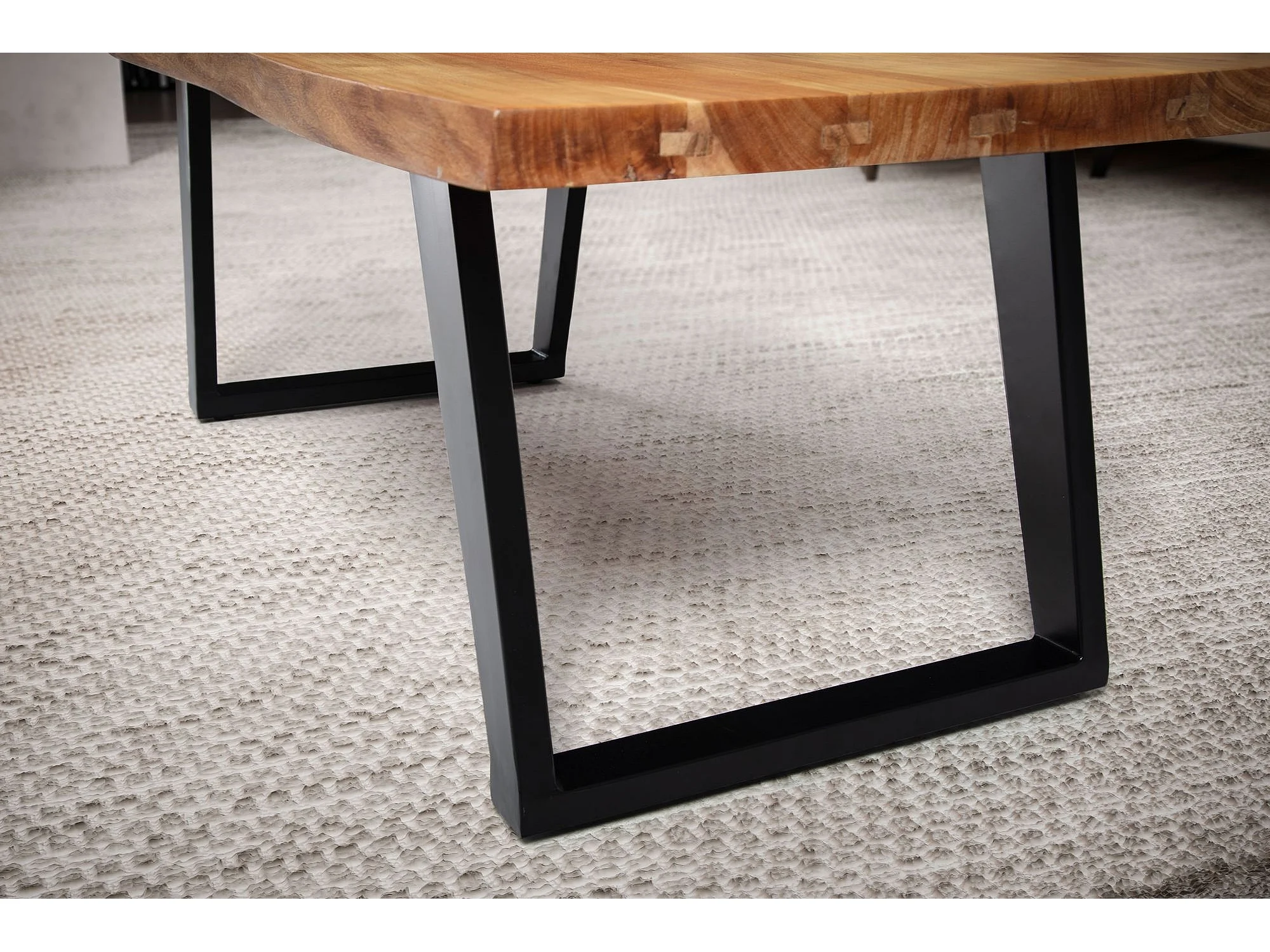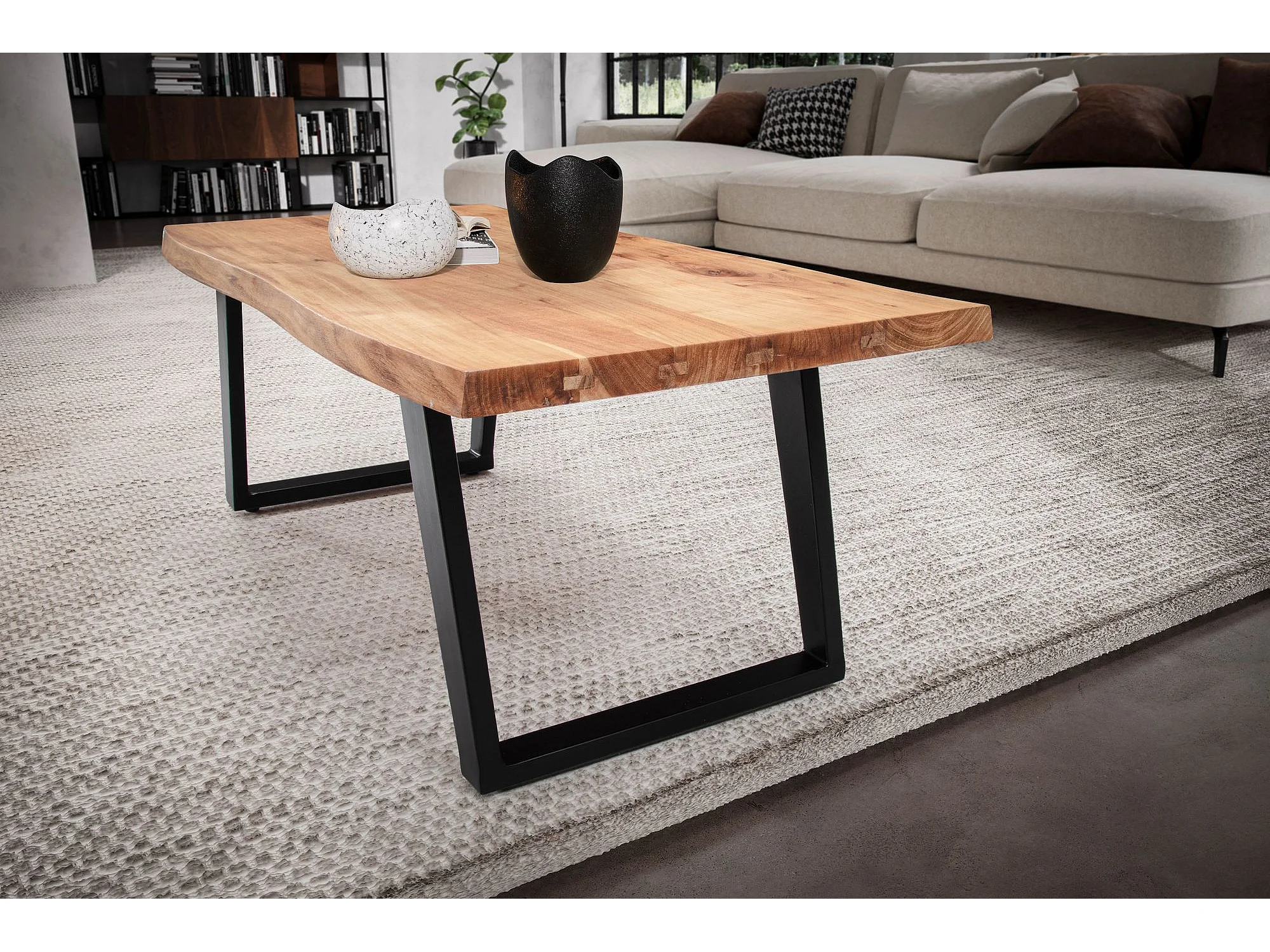 Couchtisch 120x60x46 cm Akazie Massivholz / Metall Baumkante, Design Wohnzimmertisch Rechteckig,