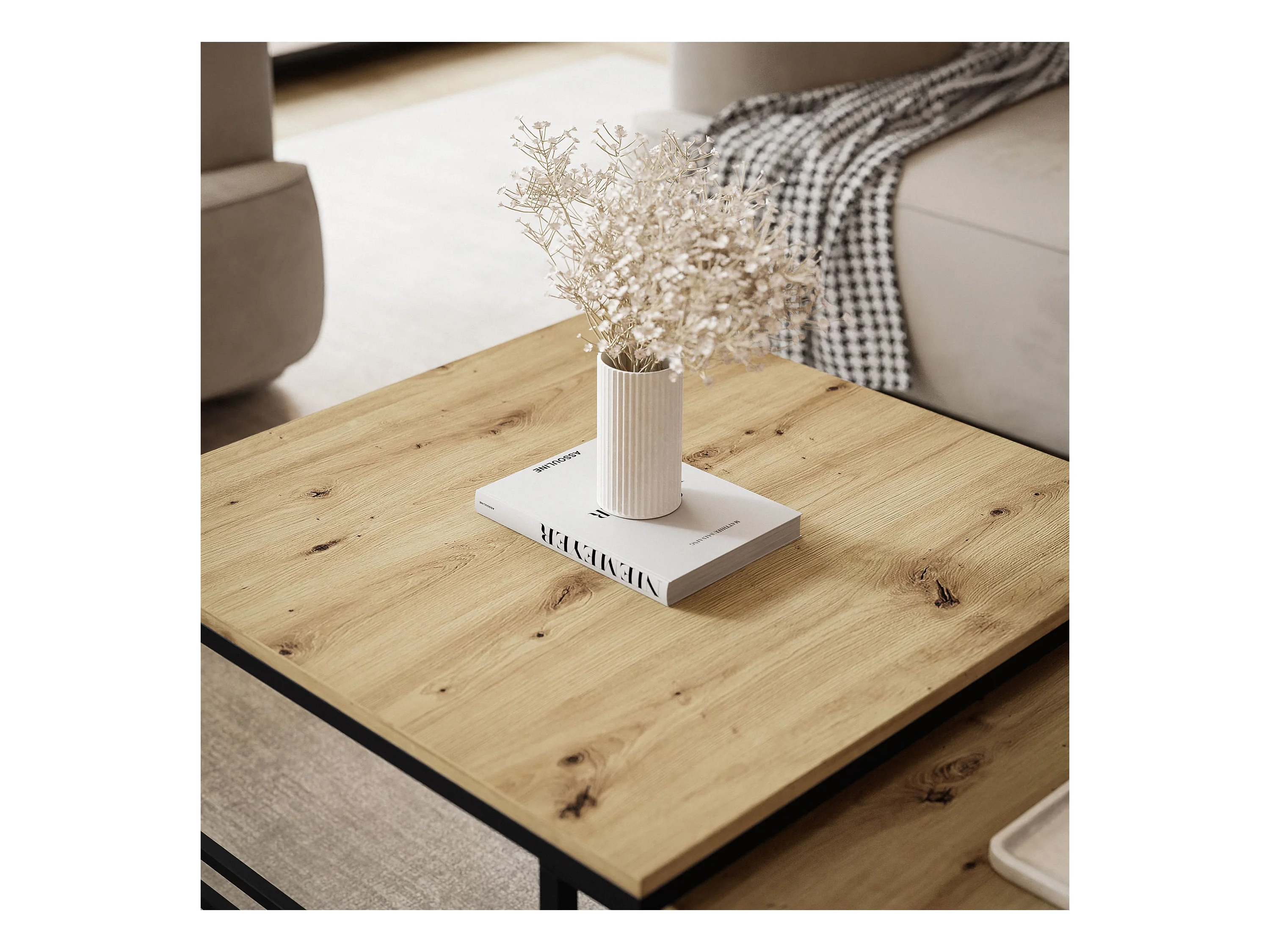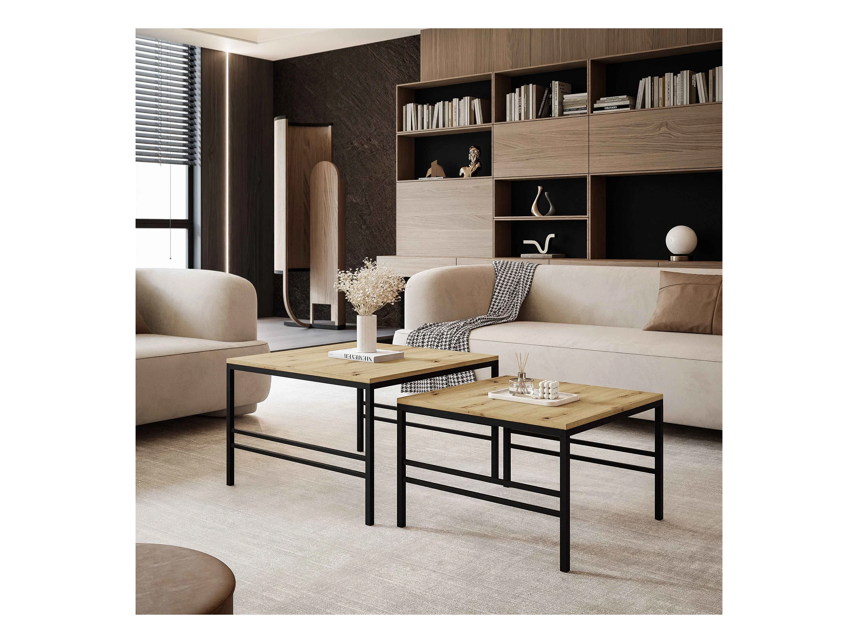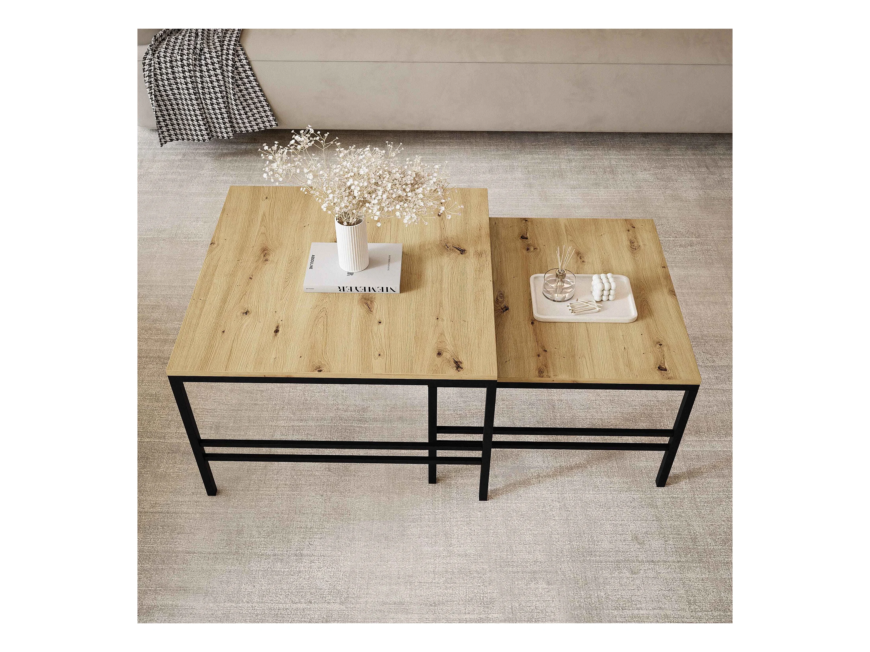 Couchtisch 2-in-1 fi70/fi60 Eiche Wotan, Gestell in Schwarz