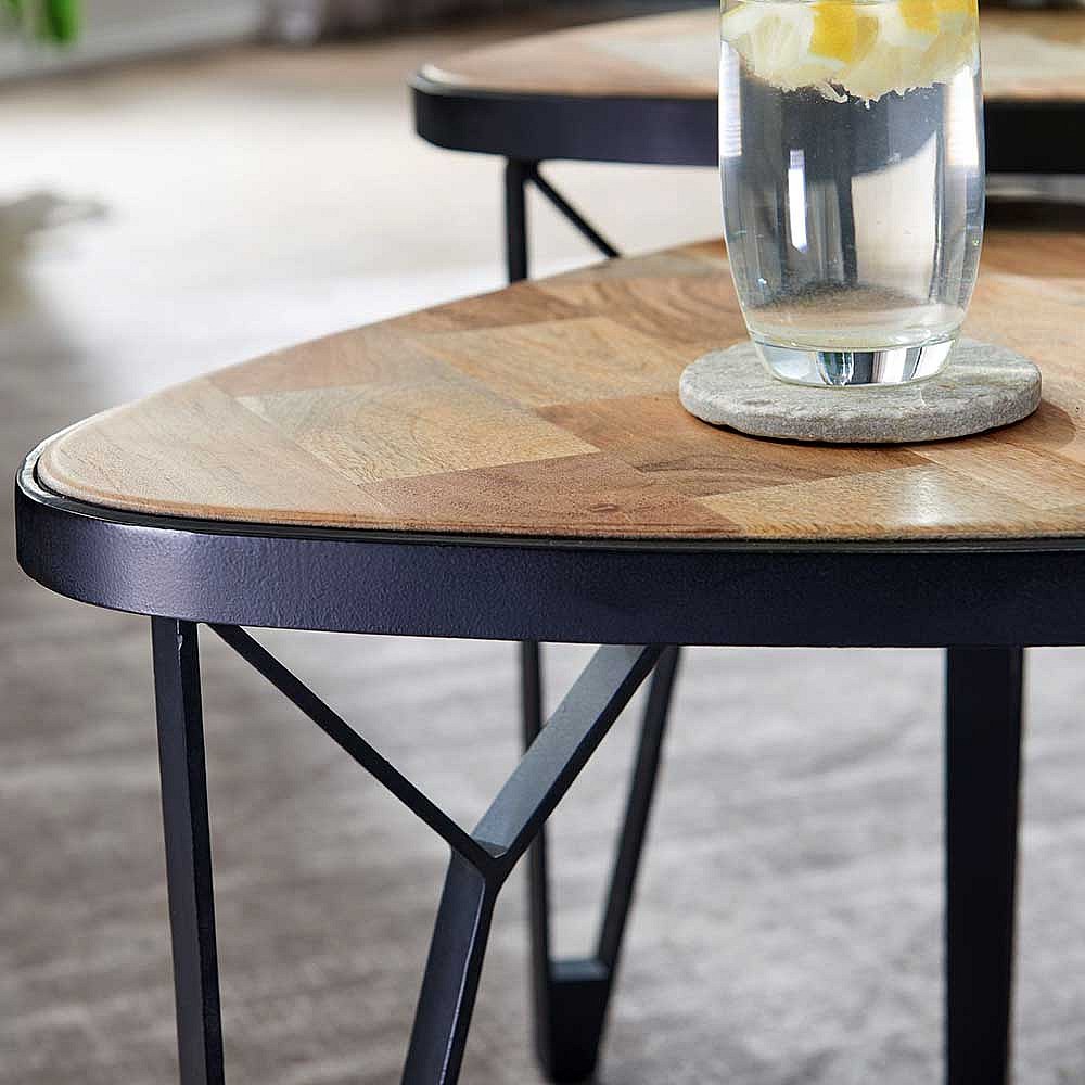 Couchtisch 2er Set modern aus Akazie Massivholz Metall (zweiteilig)
