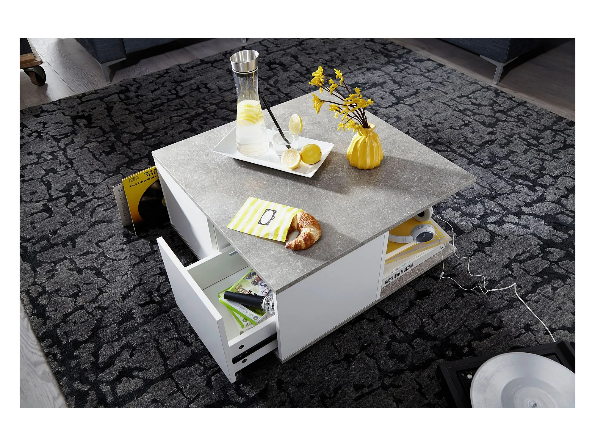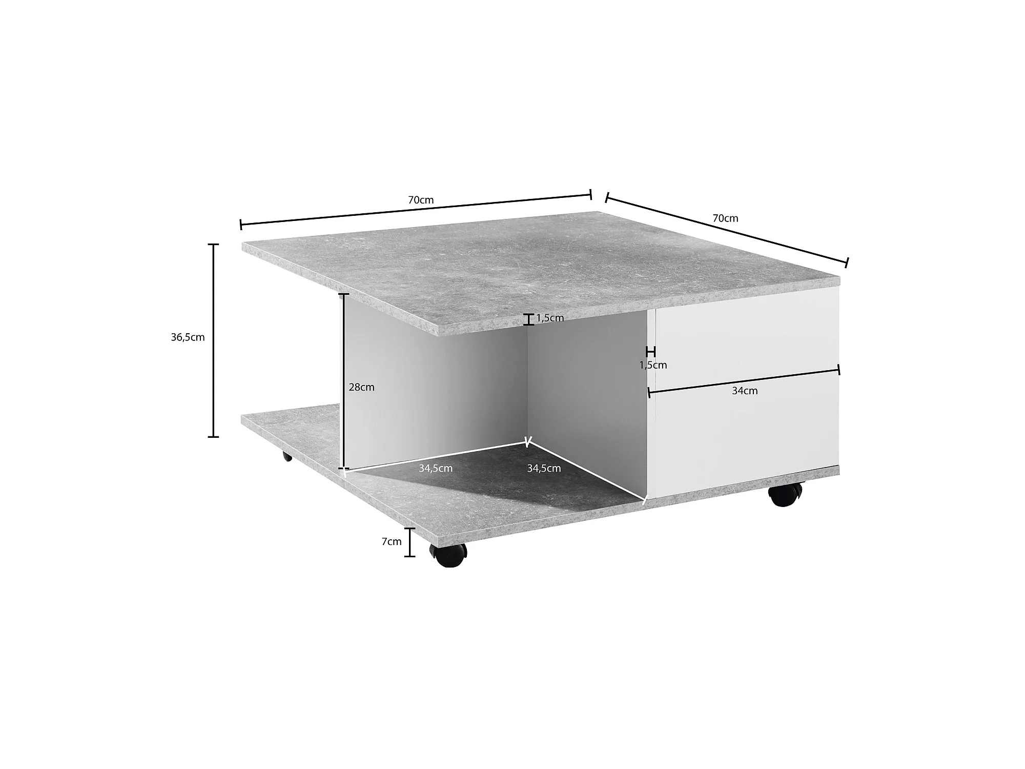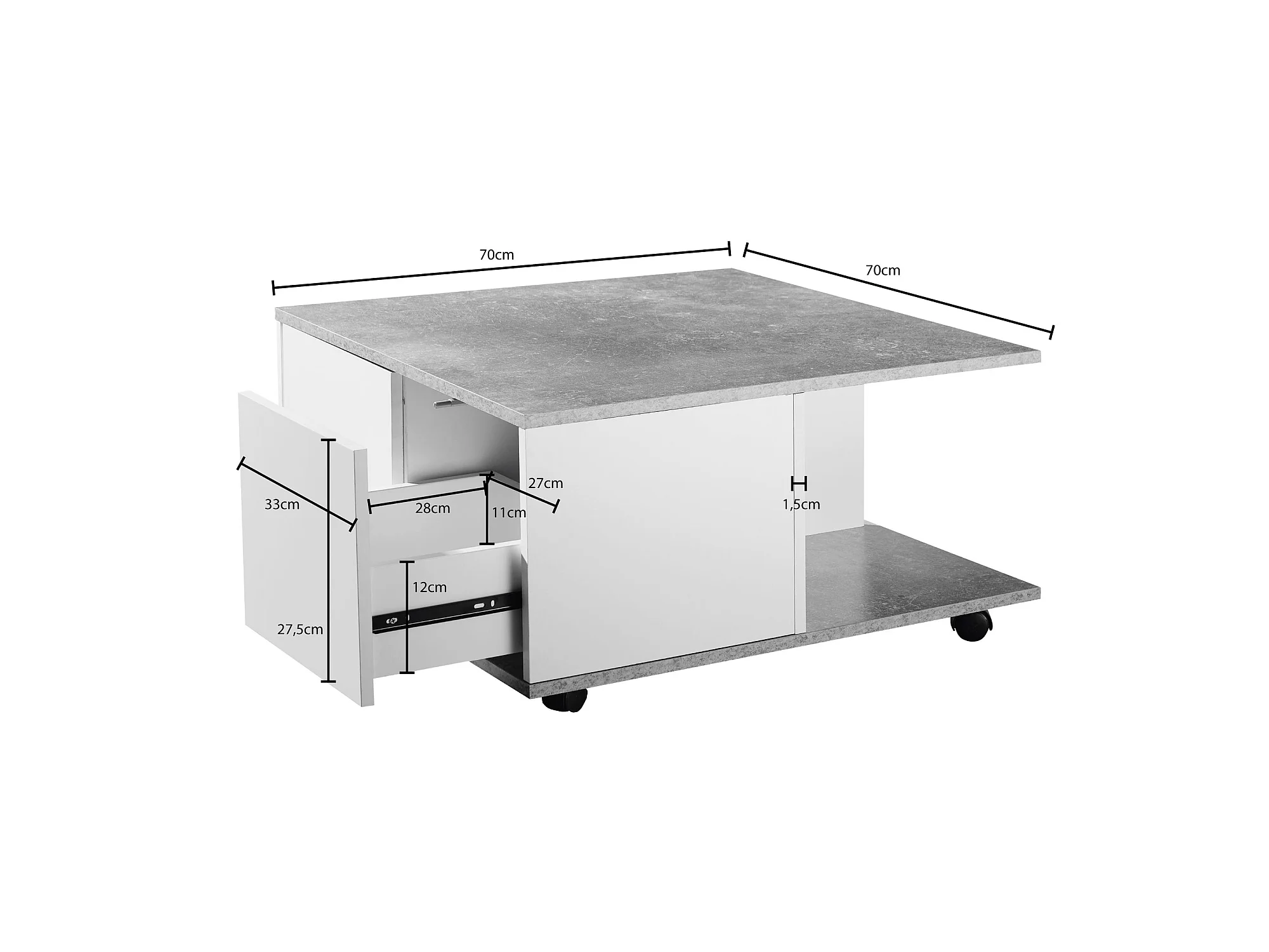 Couchtisch 70x70cm Wohnzimmertisch Sofatisch Tisch mit 2 Schubladen