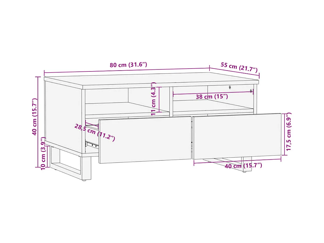 Couchtisch 80x55x40 cm Raues Massivholz Mango
