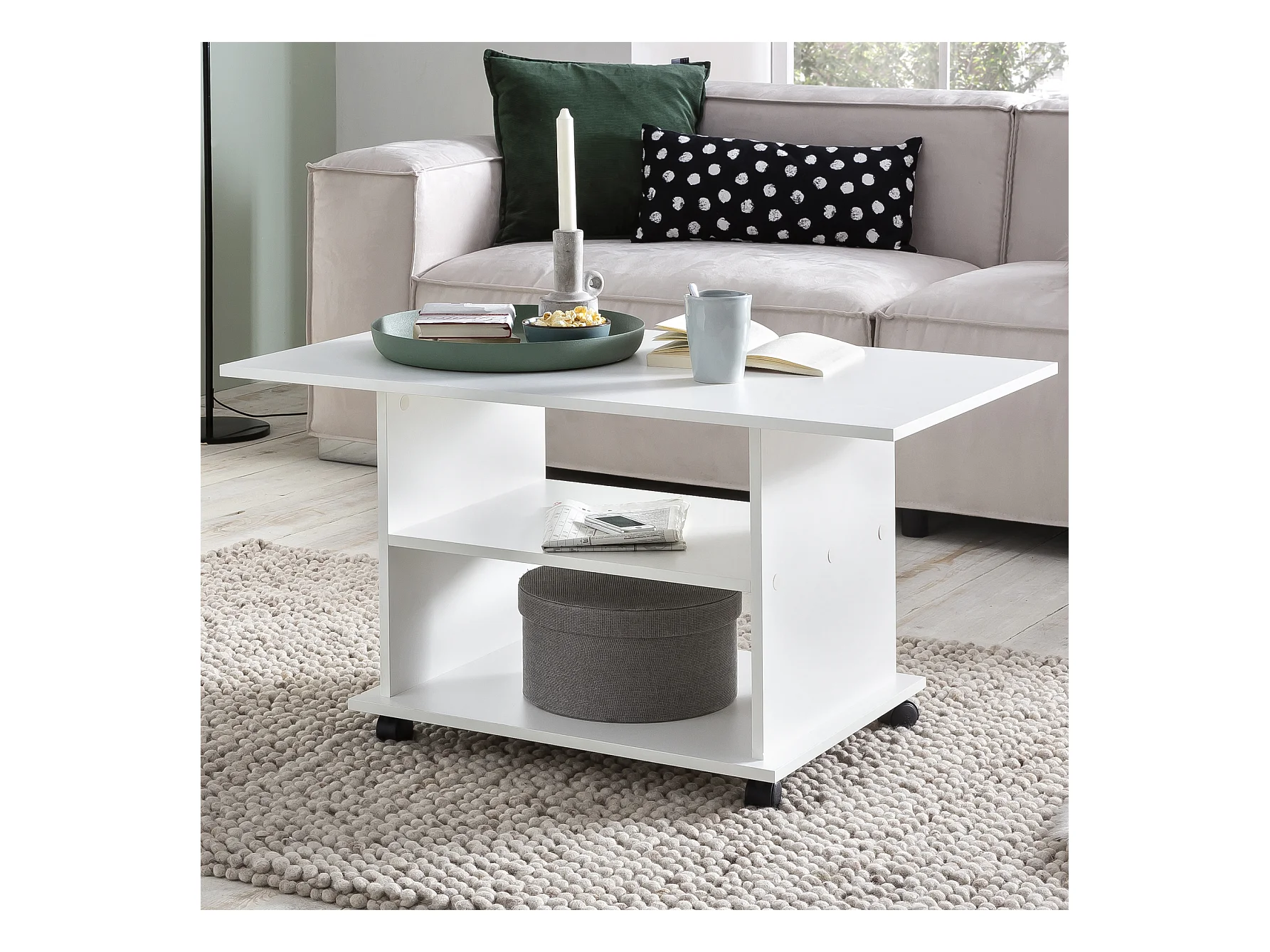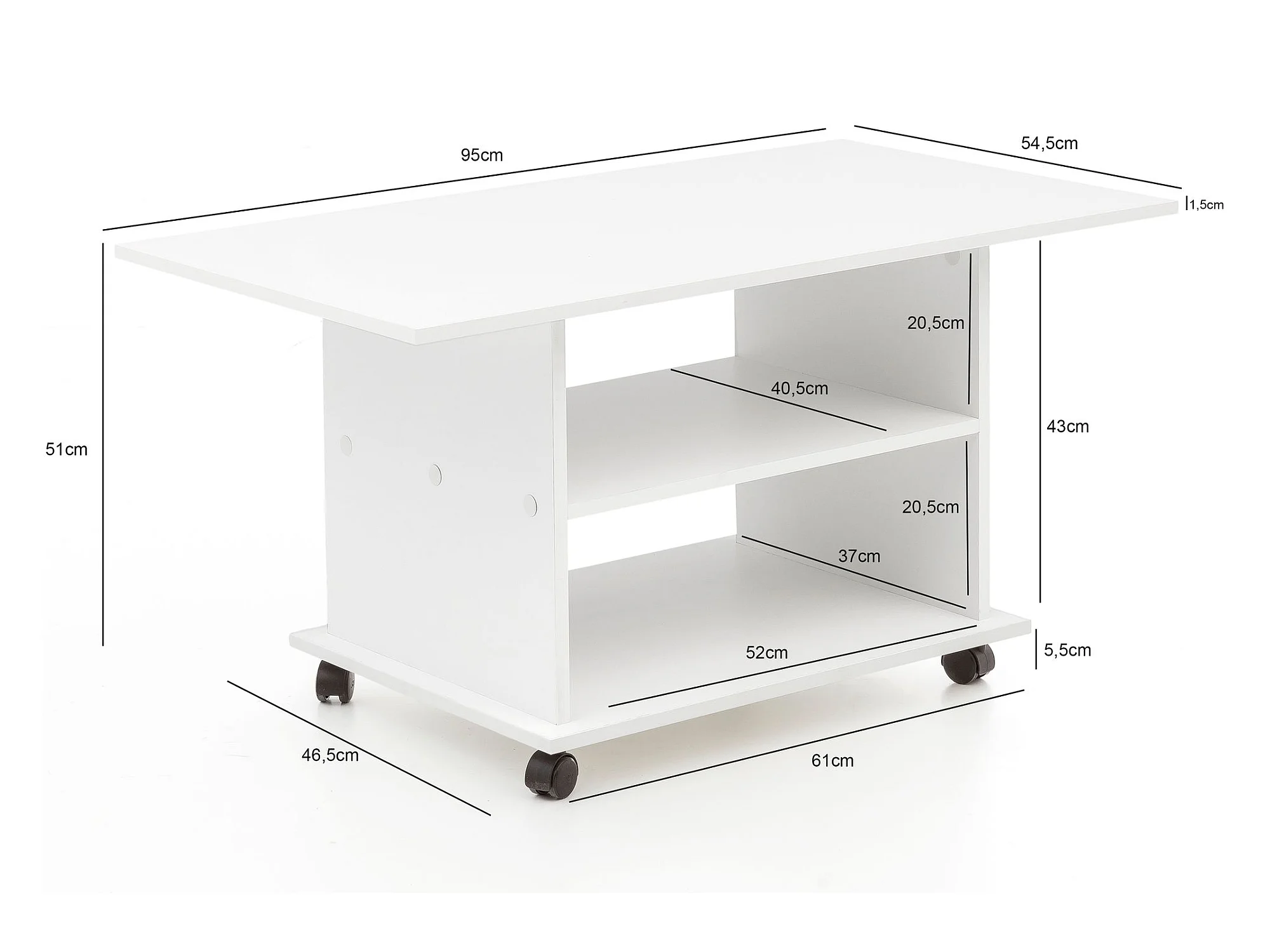 Couchtisch 95 x 51 x 54,5 cm Spanplatte Sofatisch Rollen Wohnzimmertisch