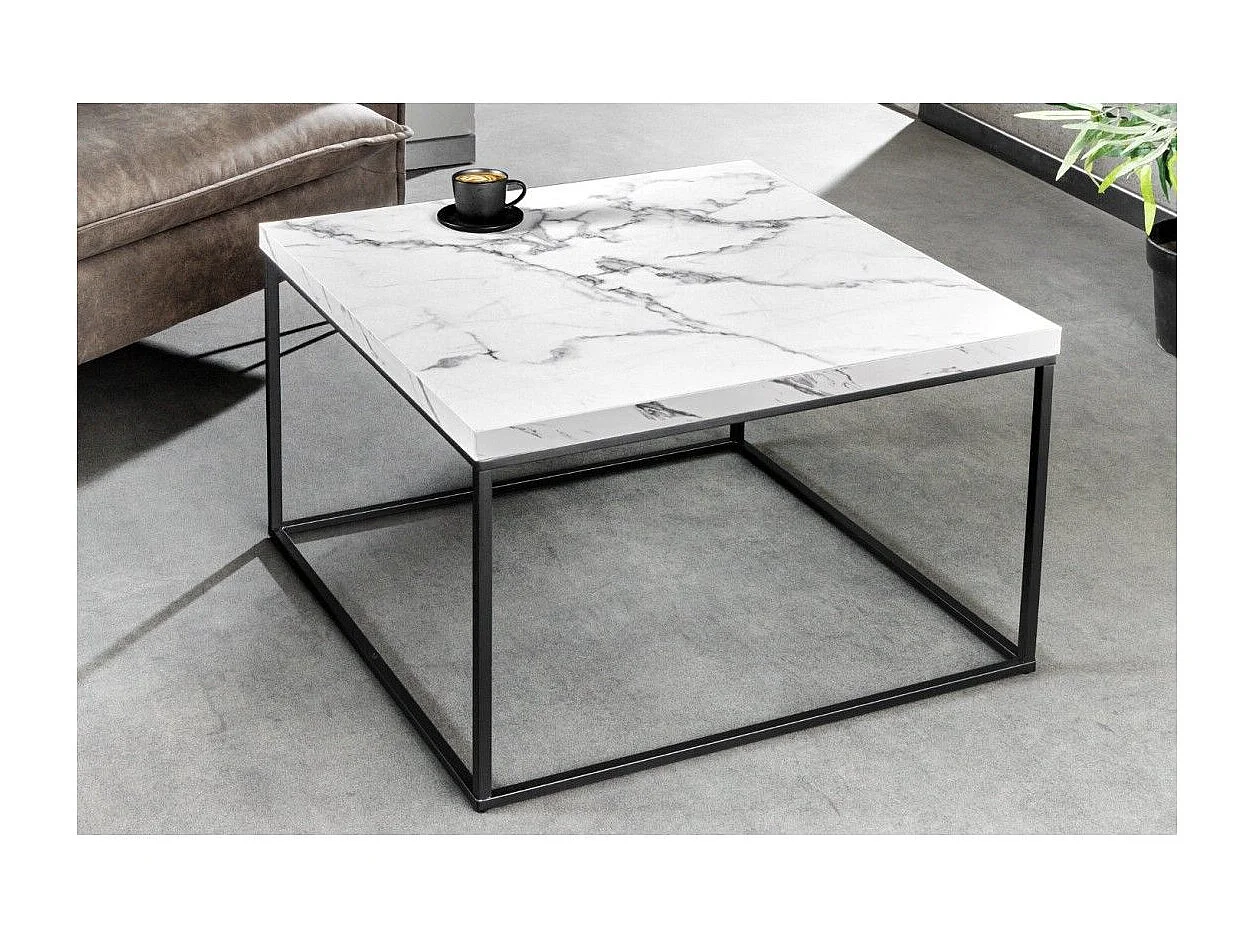 Couchtisch ABITTA quadratisch 60 cm weißer Marmor – Modern mit Marmor-Effekt-Platte und Metallbeinen