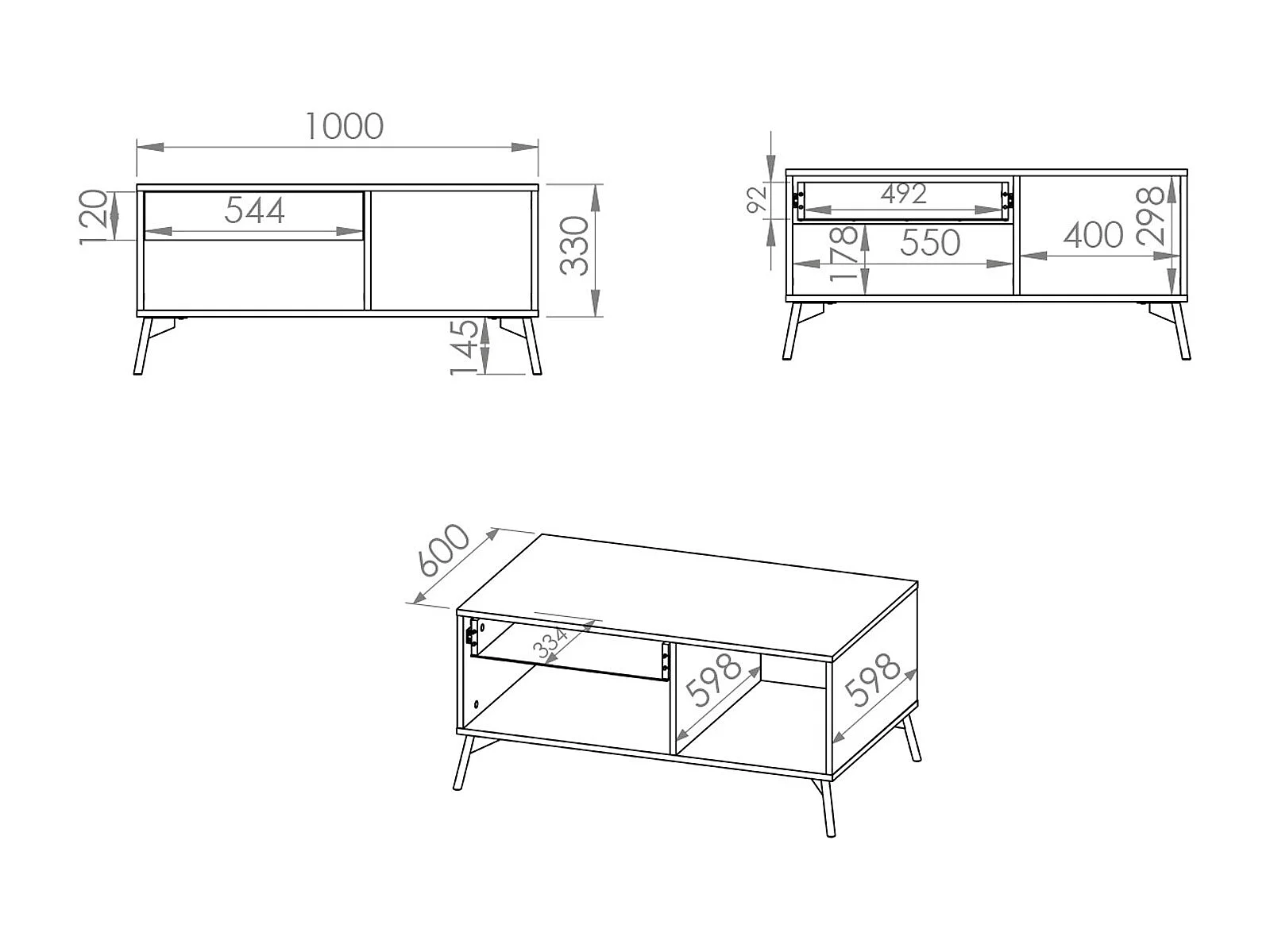 COUCHTISCH Agis Eiche castello / schwarz 100 / 60 / 48cm