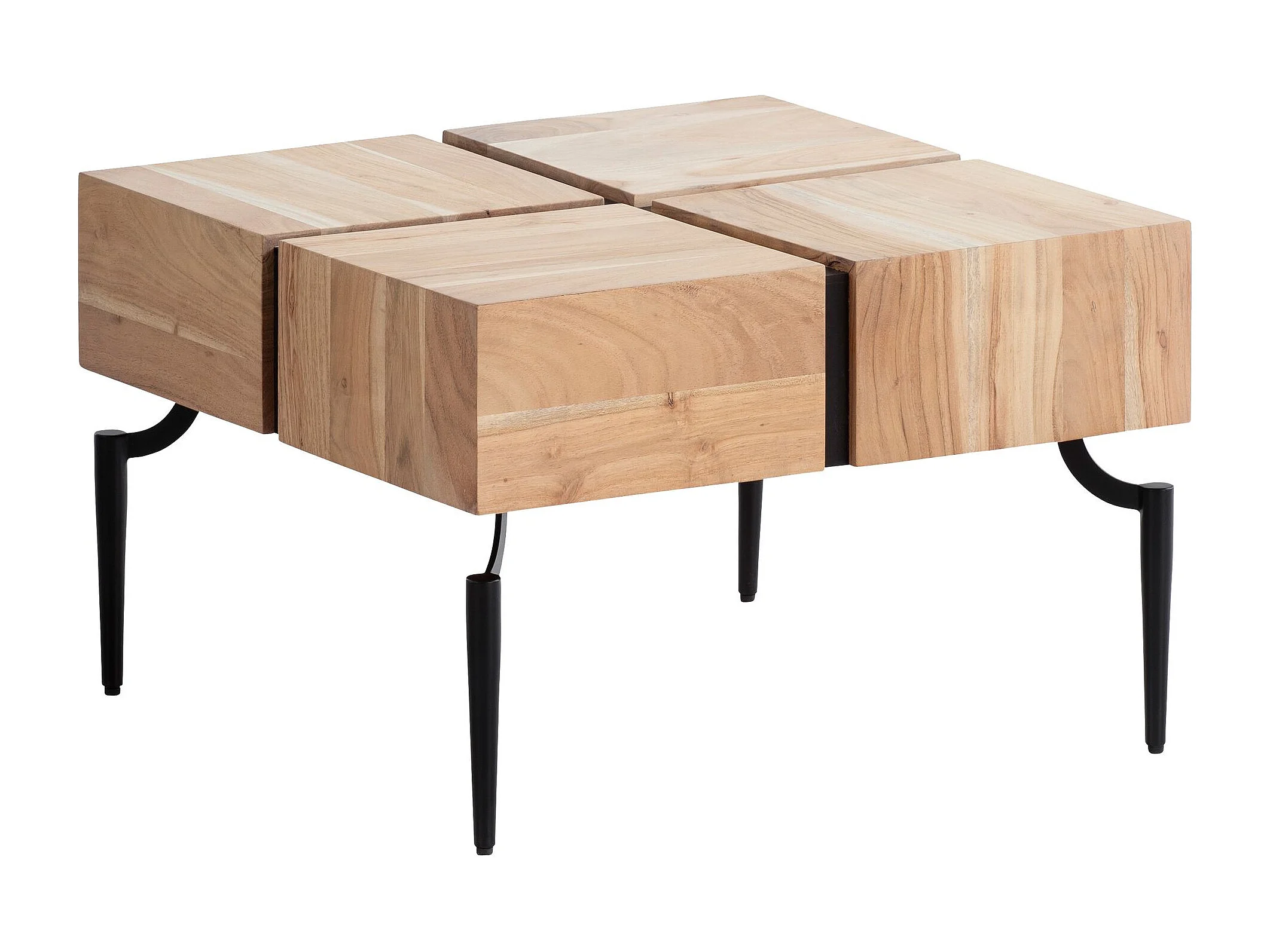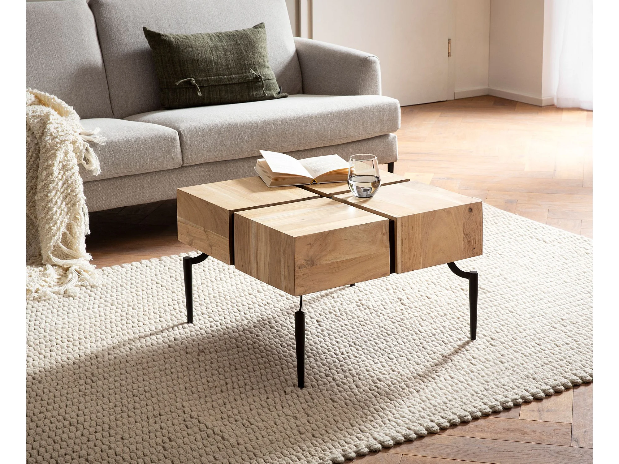 Couchtisch Akazie Massivholz 60x60x40 cm Quadratisch mit Metallgestell, Kleiner Sofatisch
