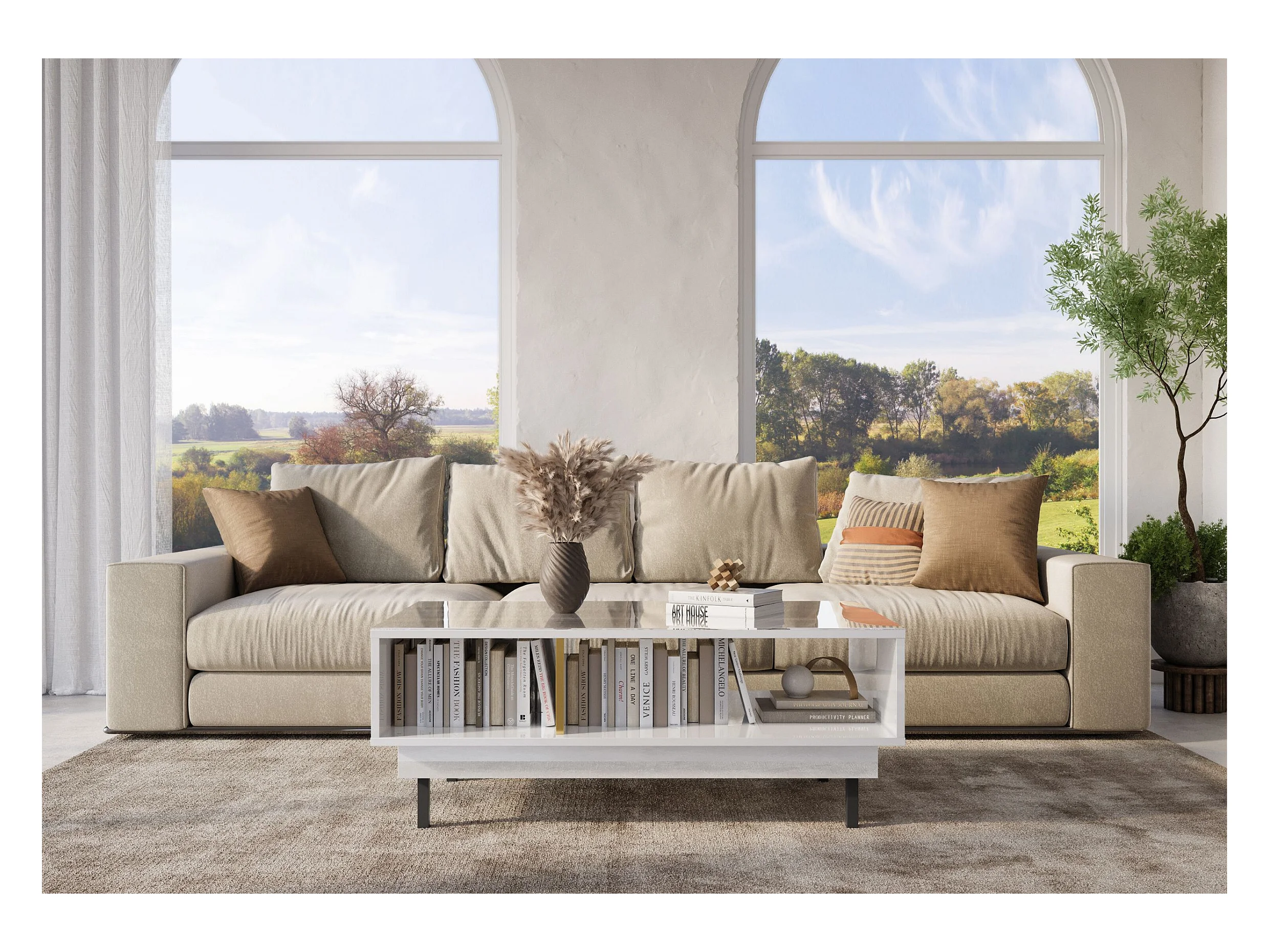 Couchtisch Artemisa weiß, goldener akzent, hochglanz