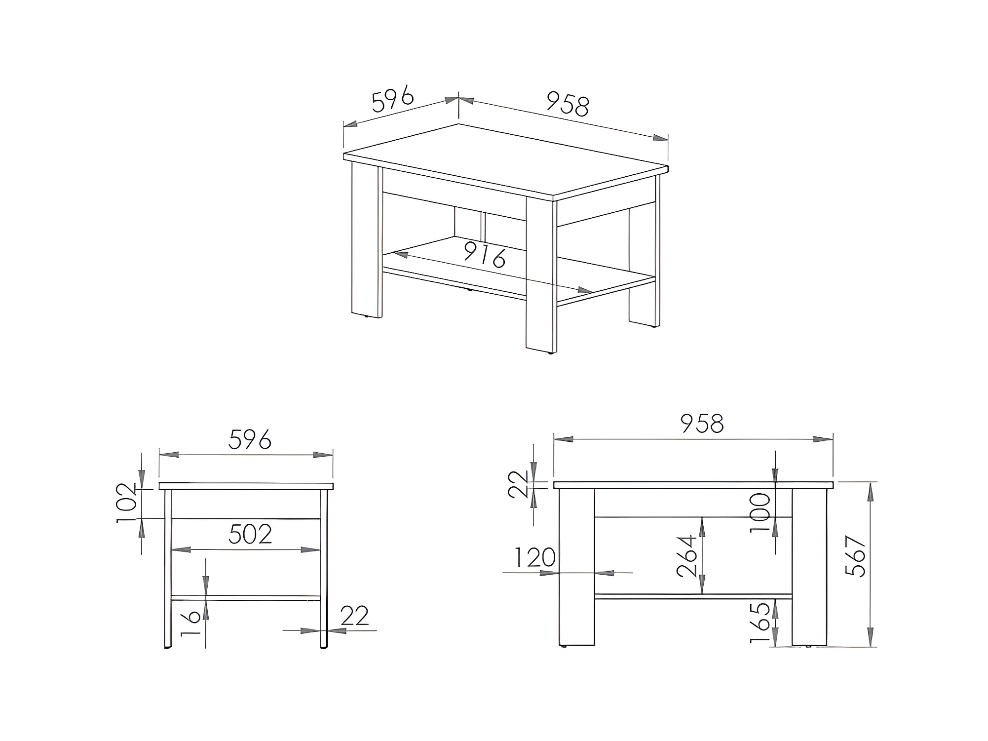 COUCHTISCH Artis Artisan Eiche 96 / 60 / 57cm