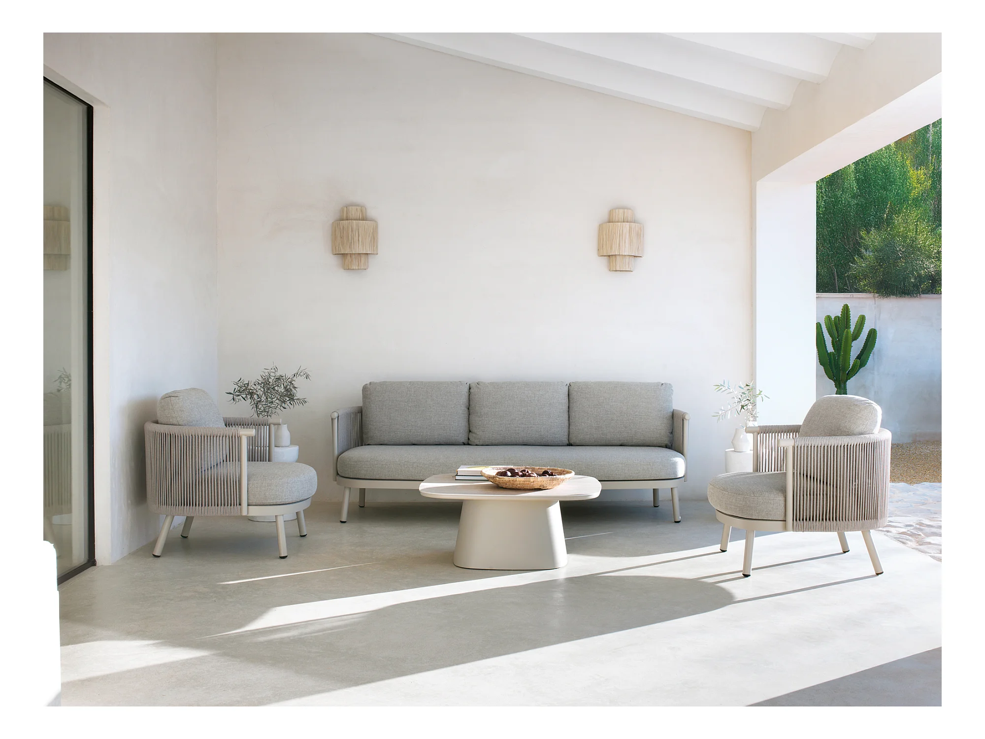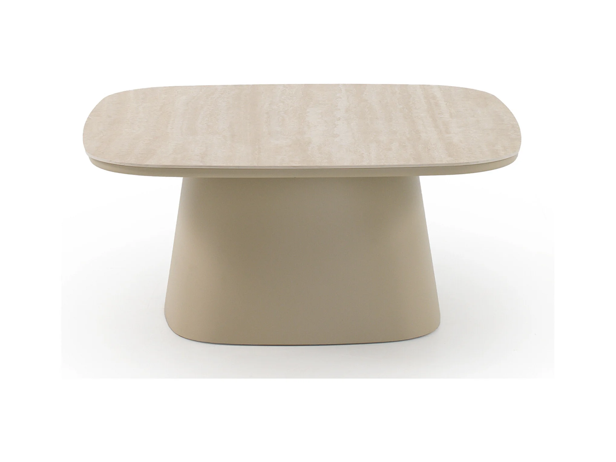 Couchtisch aus Aluminium mit Keramikplatte aus Travertin