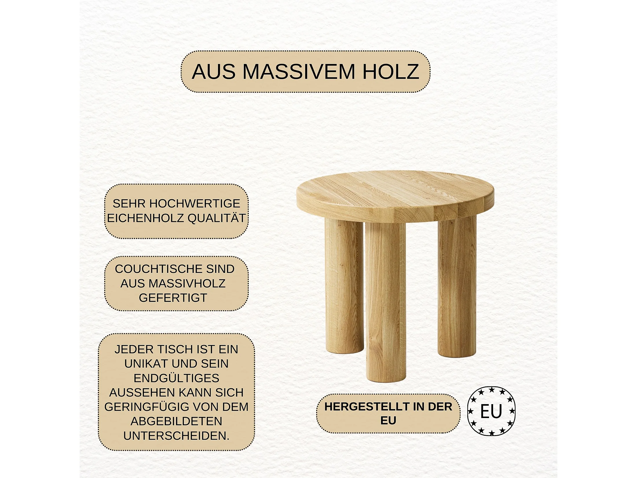 Couchtisch aus massivem Eichenholz - L70*B70*H45 stabil & modern
