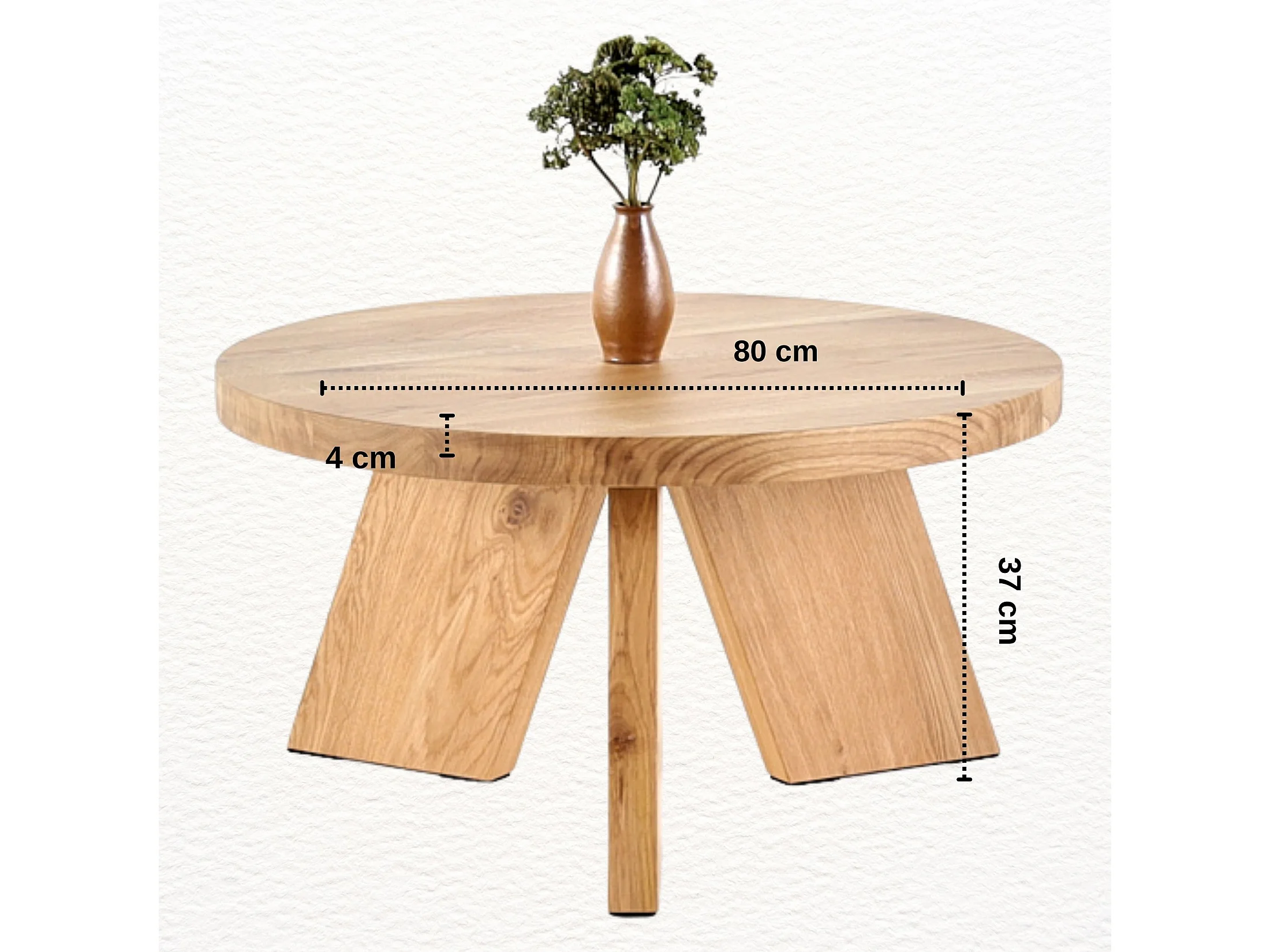 Couchtisch aus massivem Eichenholz - L80*B80*H37 stabil & modern