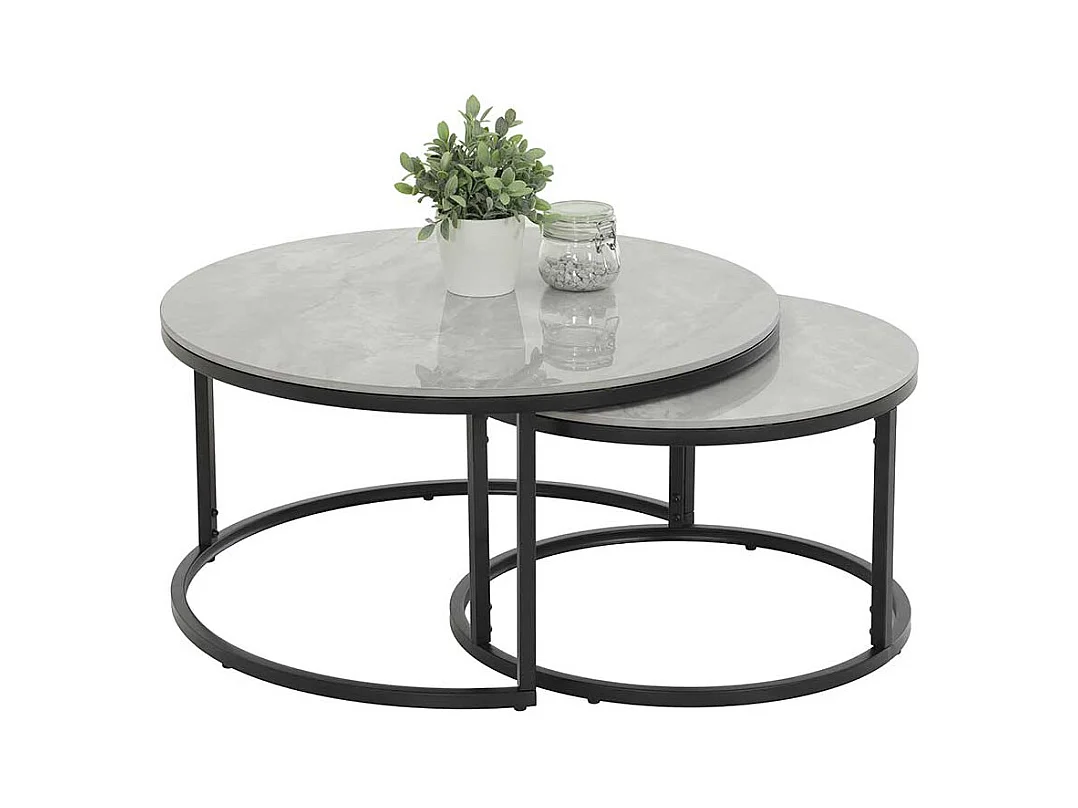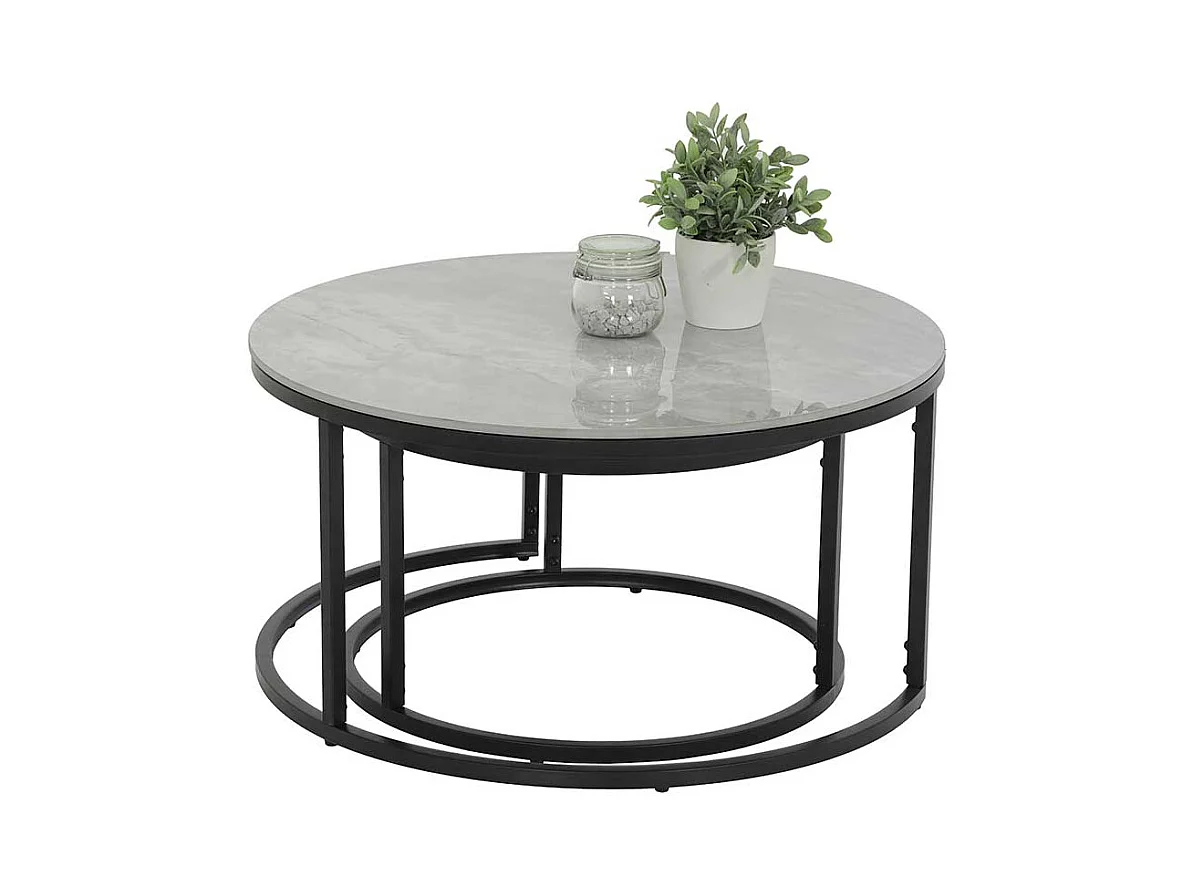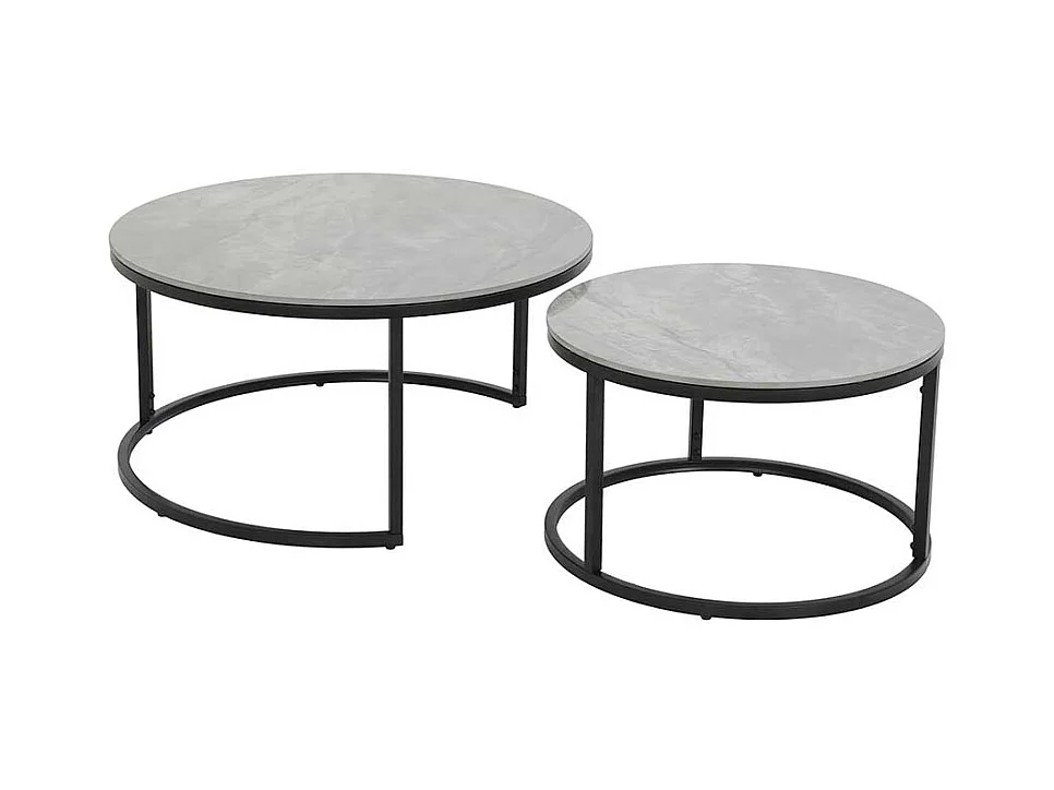 Couchtisch aus Metall und Sinterstein rund (zweiteilig)
