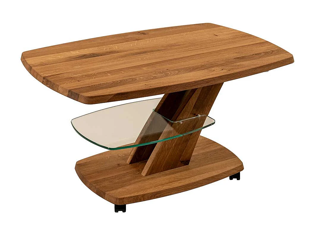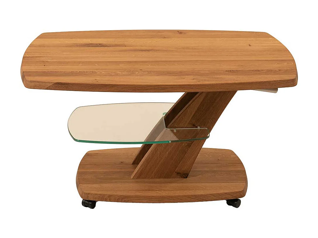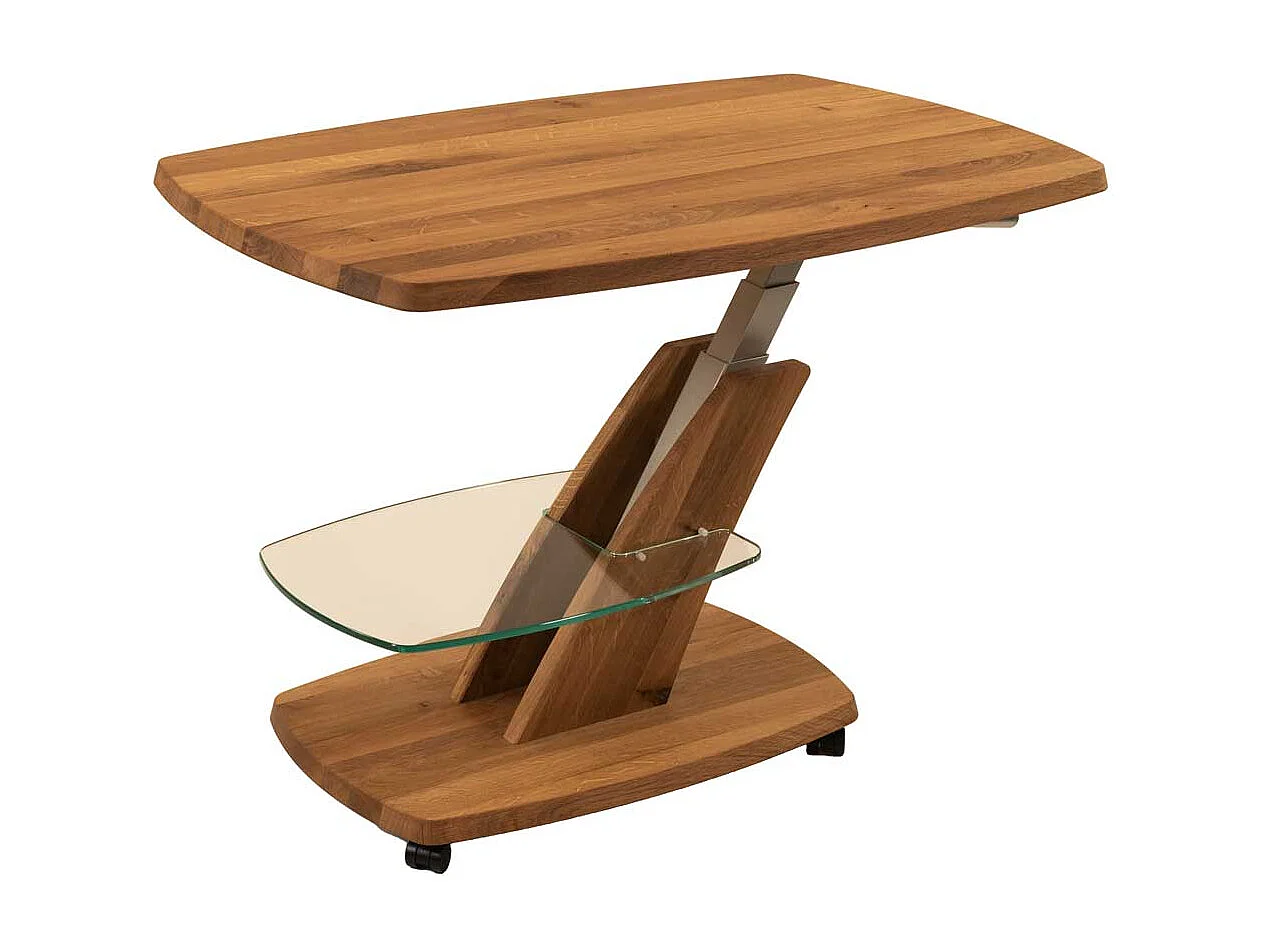 Couchtisch aus Wildeiche Massivholz auf Rollen höhenverstellbar