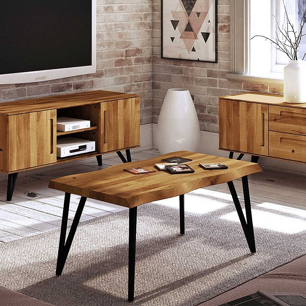 Couchtisch aus Wildeiche Massivholz und Stahl Loft Design