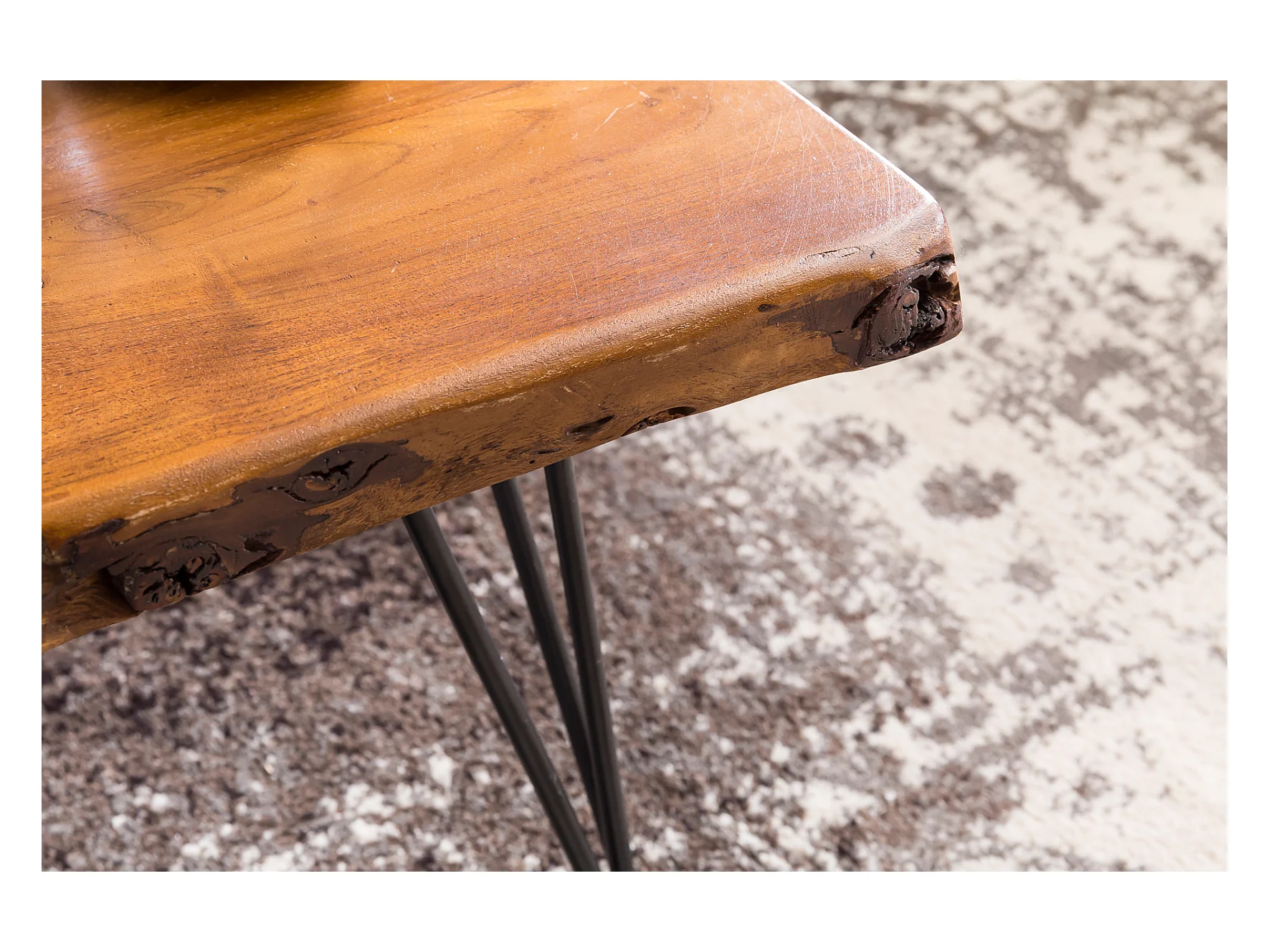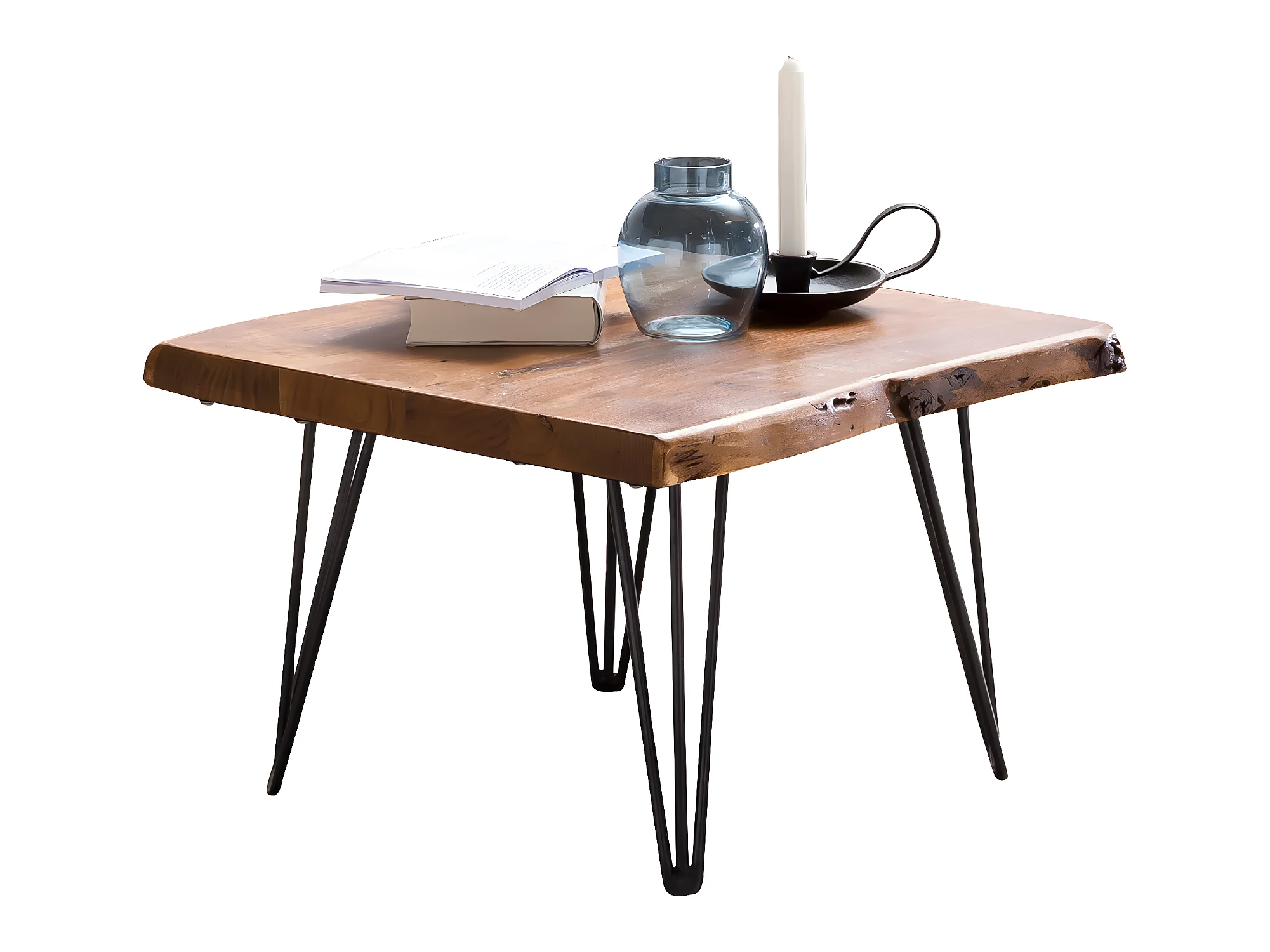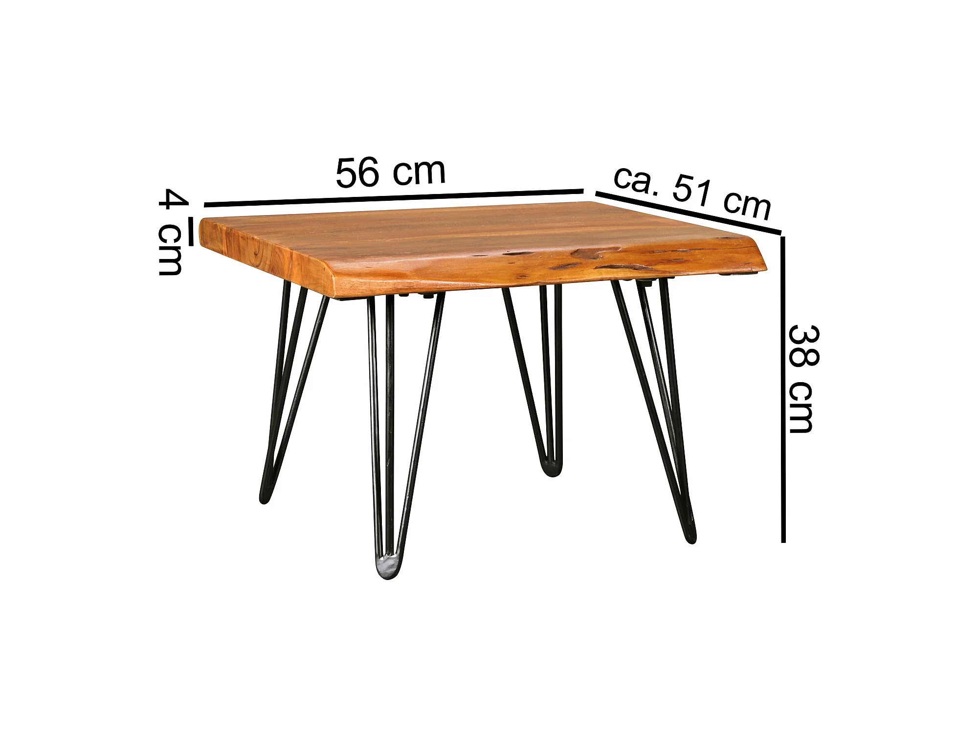 Couchtisch Baumkante 56x38x51 cm Sheesham Massivholz Metallbeine Wohnzimmertisch