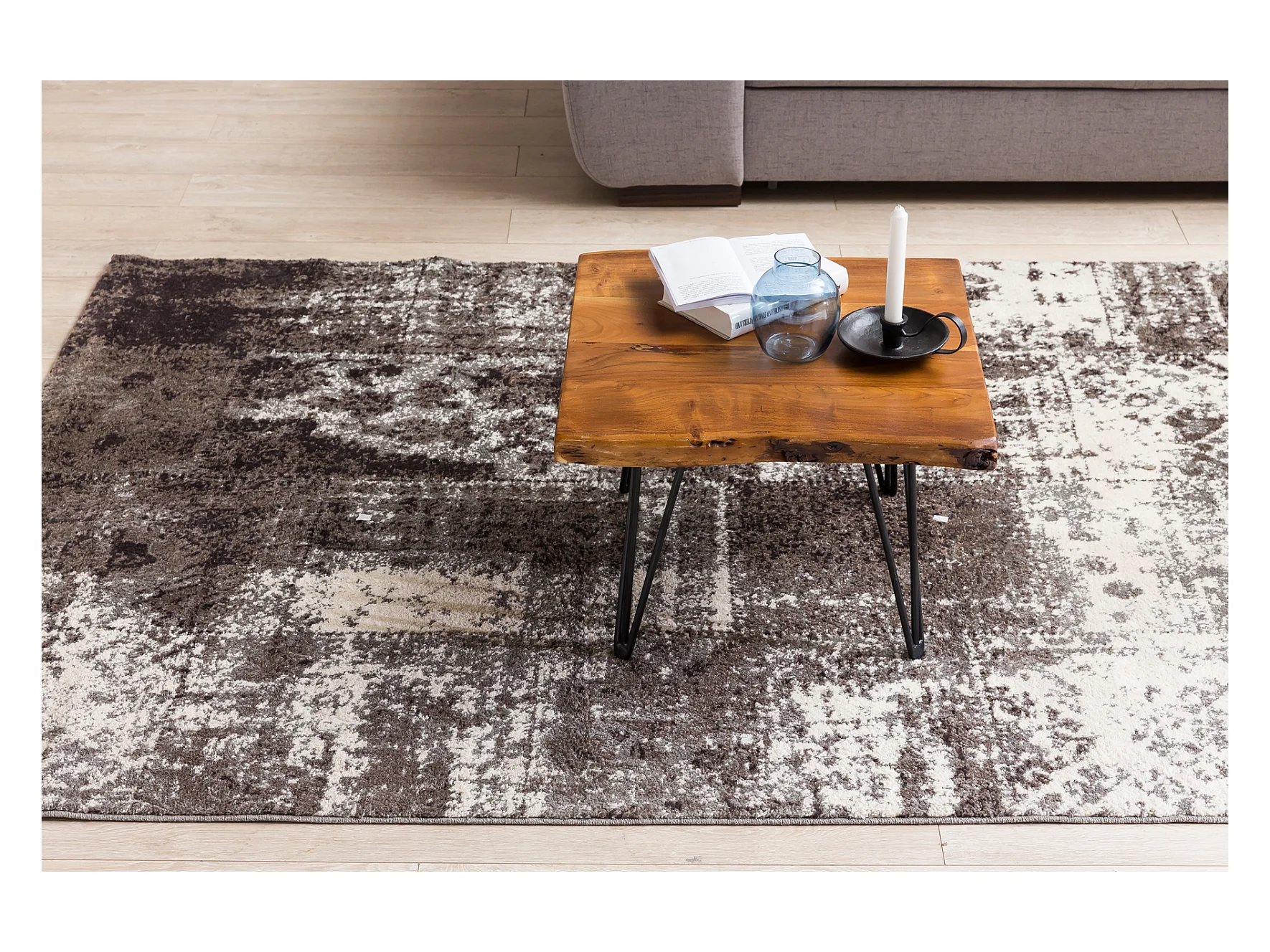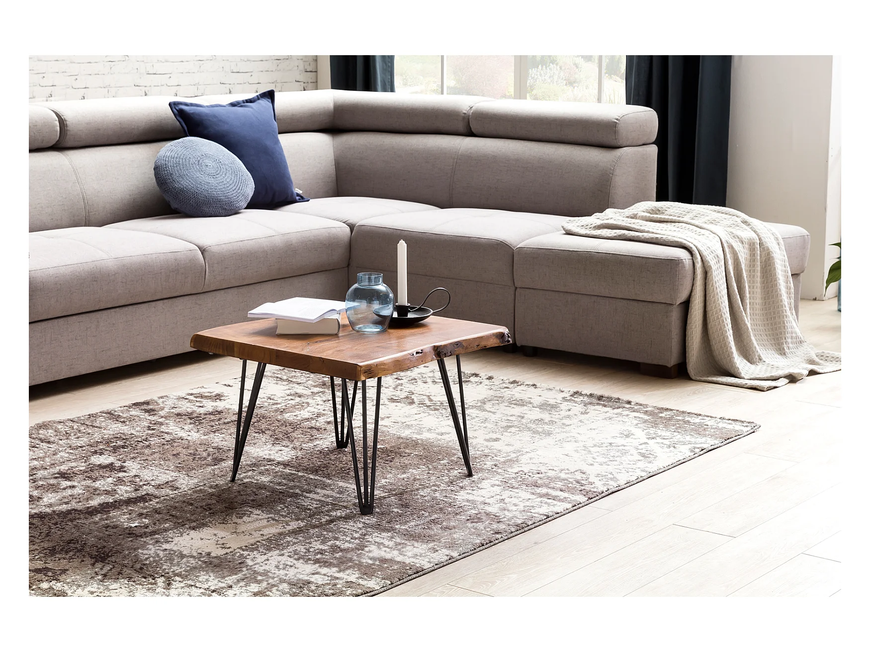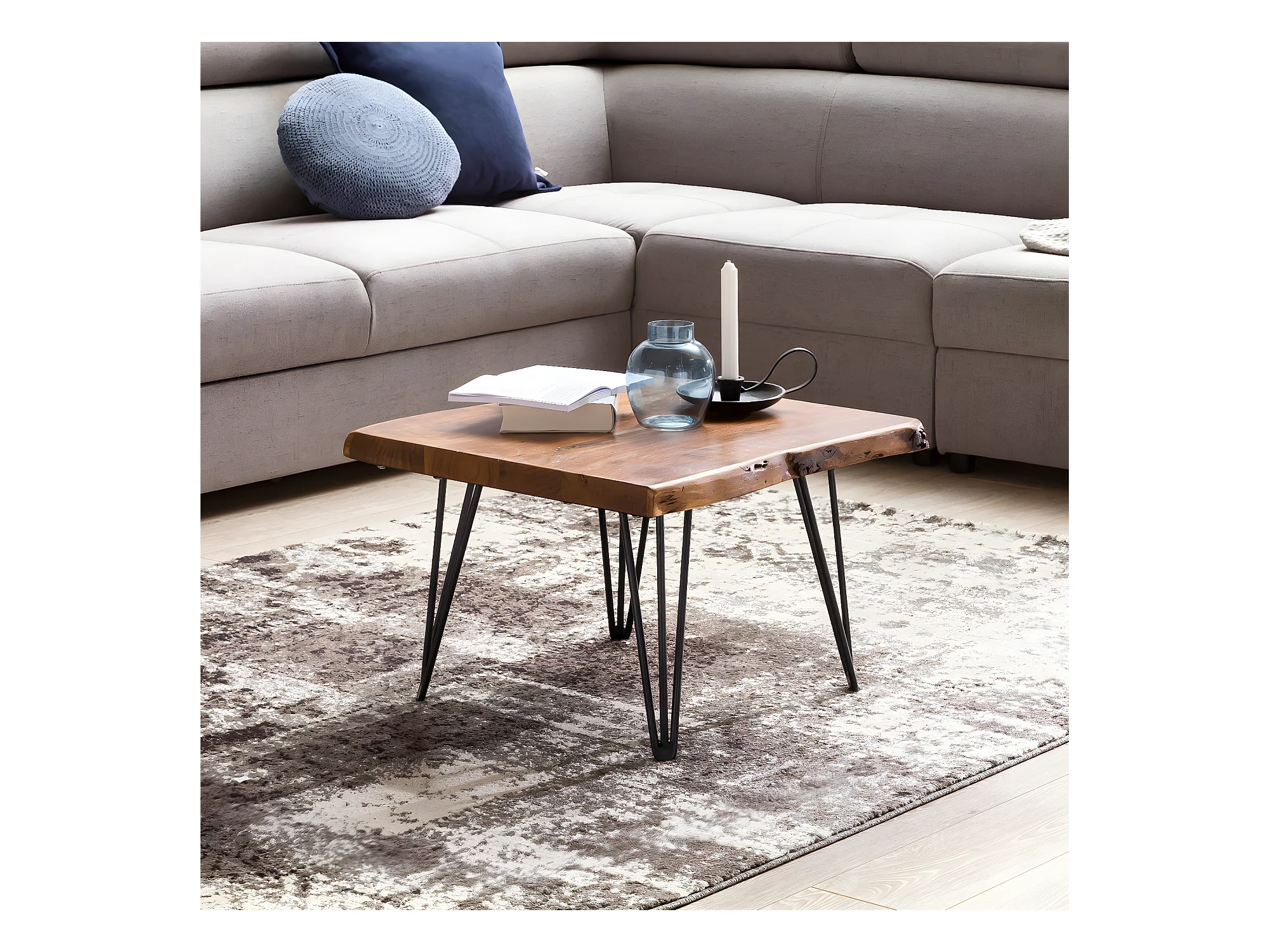 Couchtisch Baumkante 56x38x51 cm Sheesham Massivholz Metallbeine Wohnzimmertisch