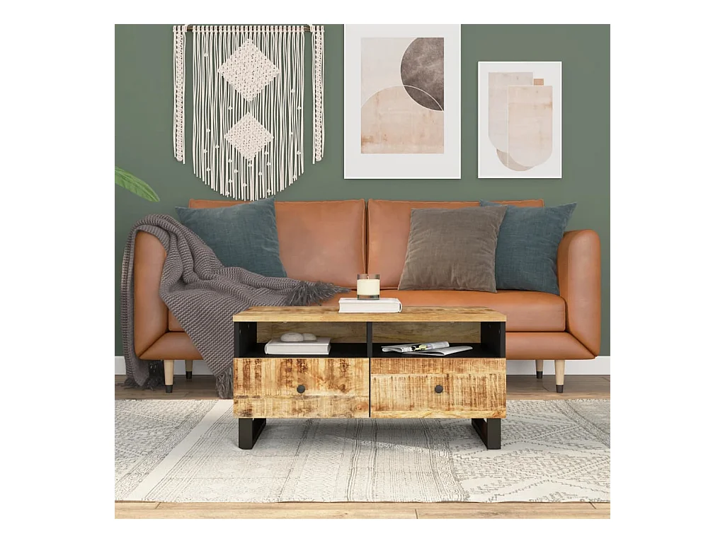 Couchtisch Beistelltisch 80x54x40 cm Massivholz Mango & Holzwerkstoff -MN26059