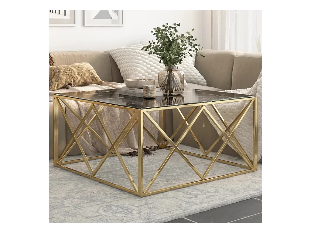 Couchtisch Beistelltisch Golden Edelstahl und Hartglas -MN48332