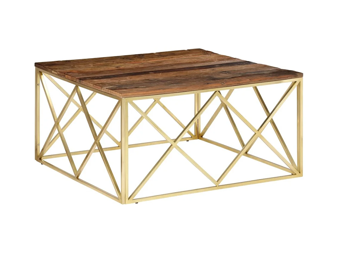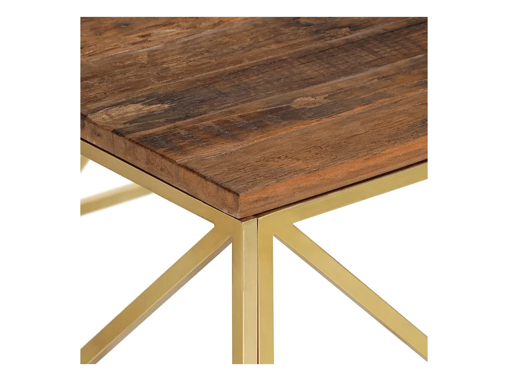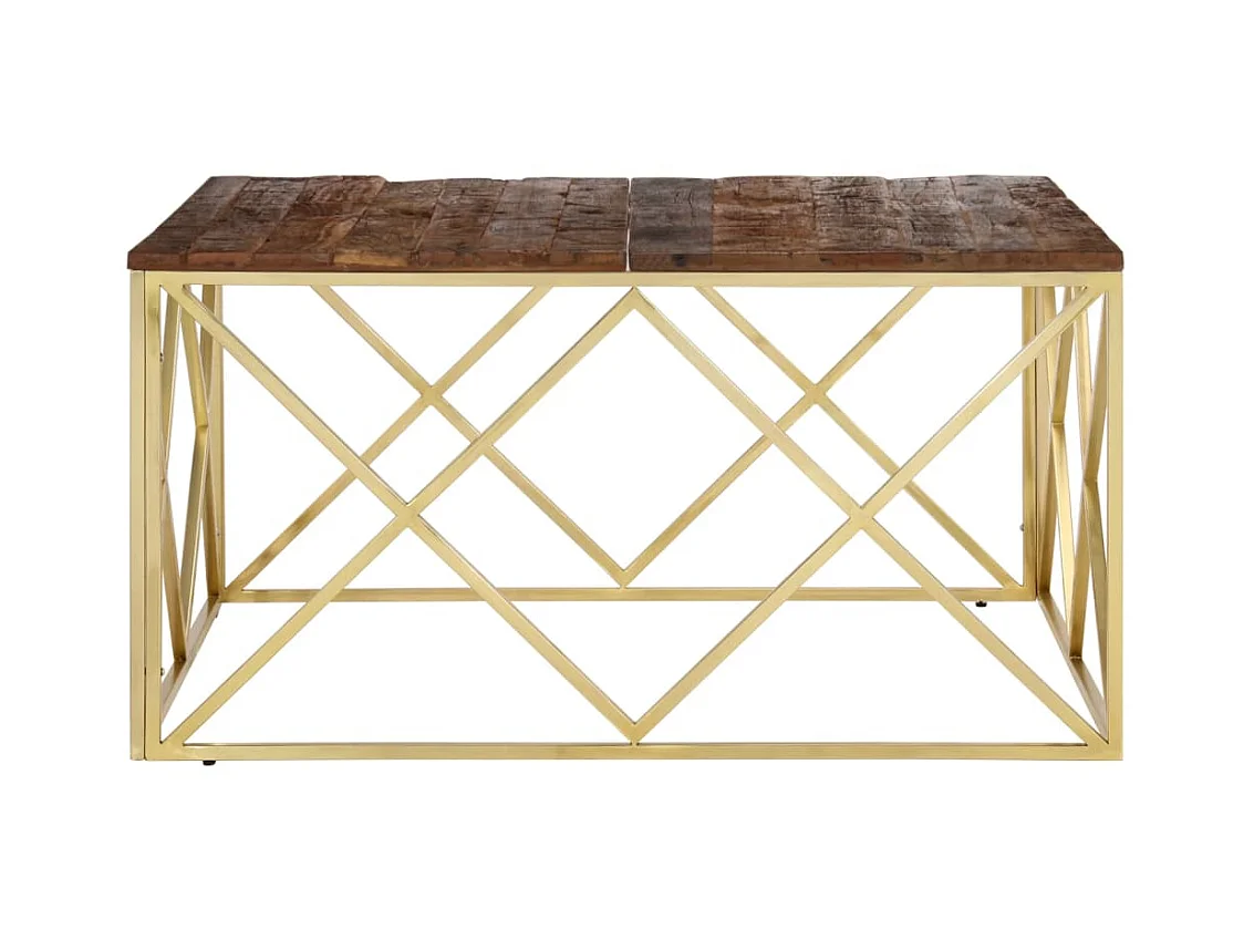 Couchtisch Beistelltisch Golden Edelstahl und Massivholz -MN51555