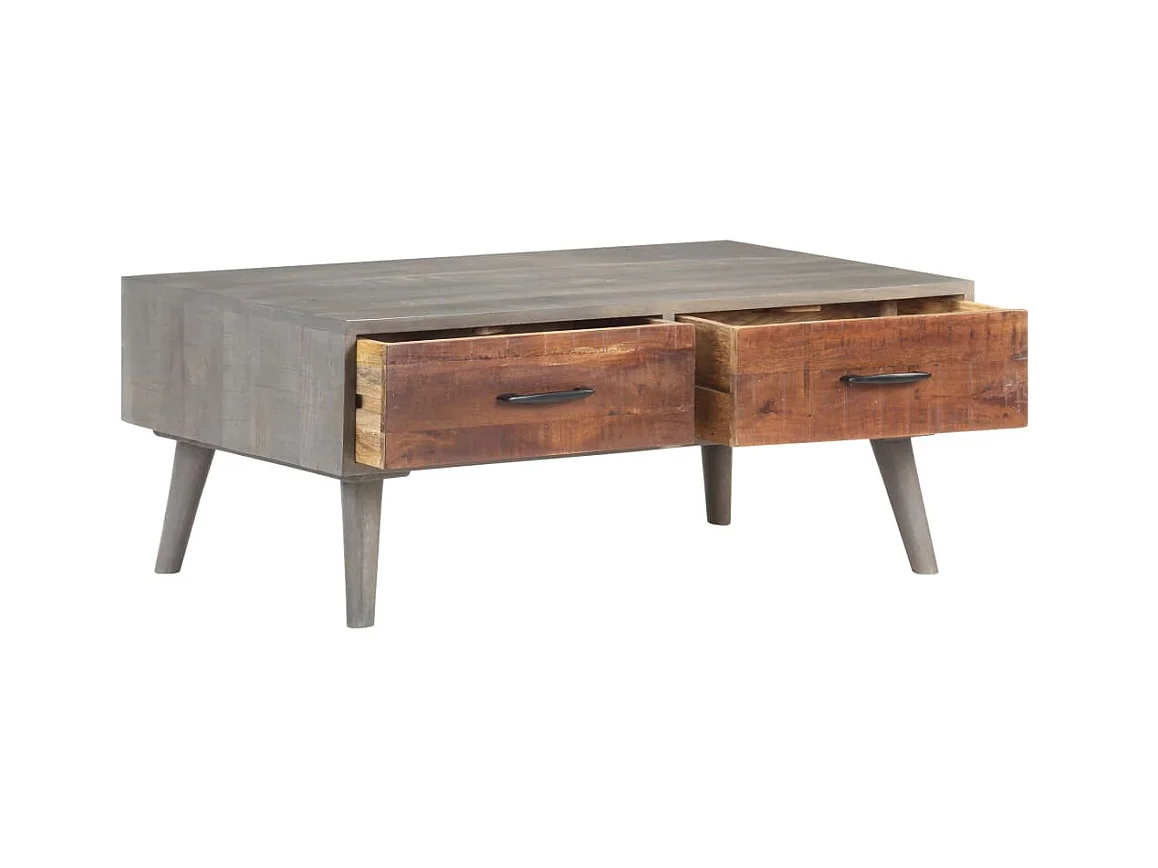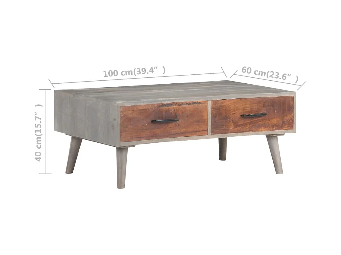 Couchtisch Beistelltisch Grau 100x60x40 cm Raues Mango-Massivholz -MN45675