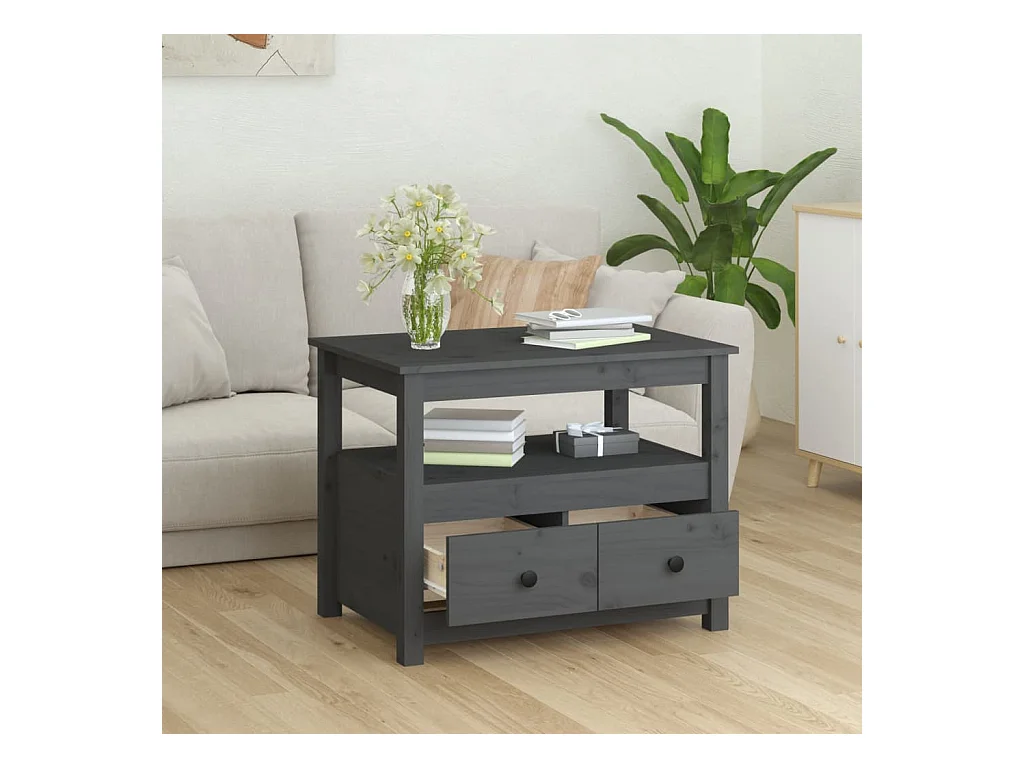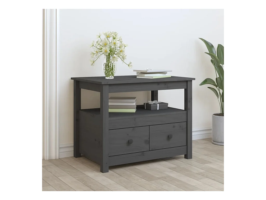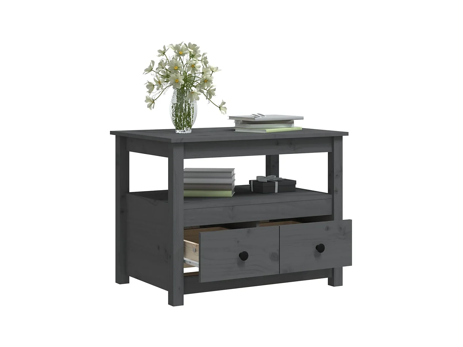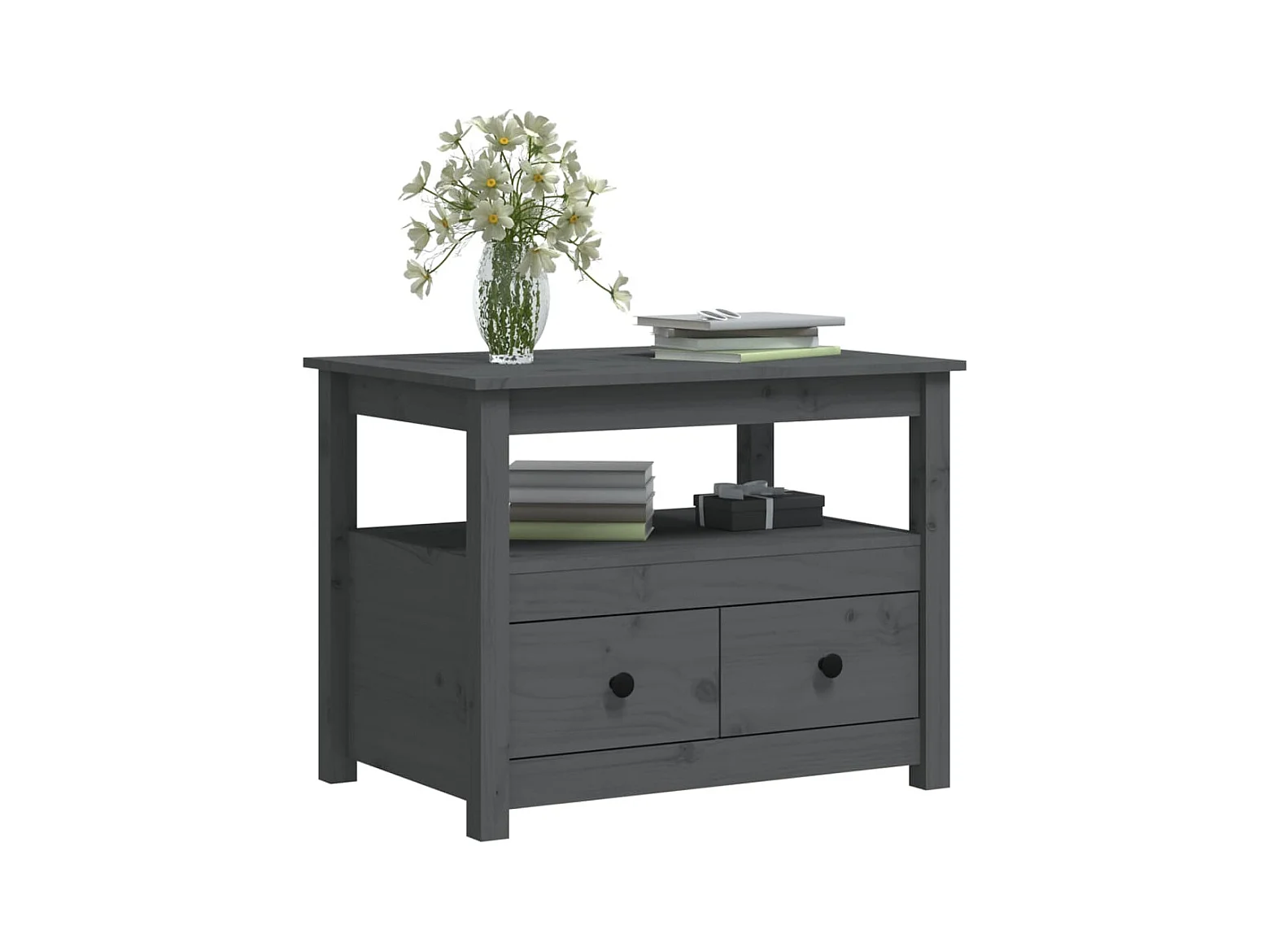 Couchtisch Beistelltisch Grau 71x49x55 cm Massivholz Kiefer -MN83575
