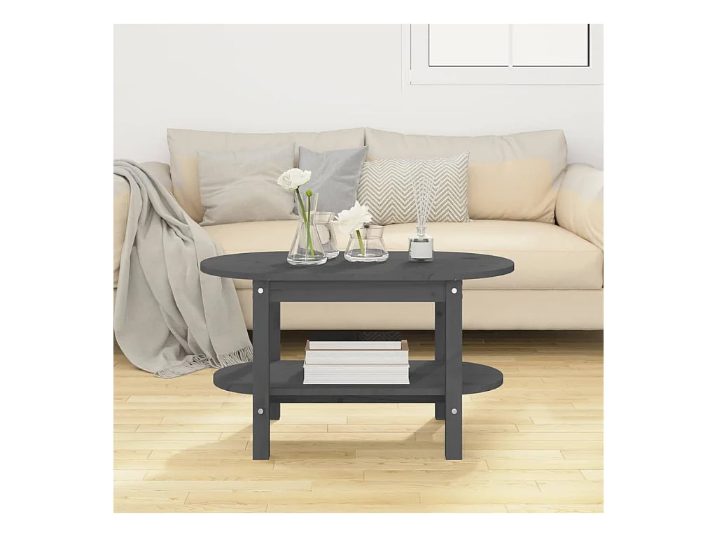 Couchtisch Beistelltisch Grau 80x45x45 cm Massivholz Kiefer -MN40170