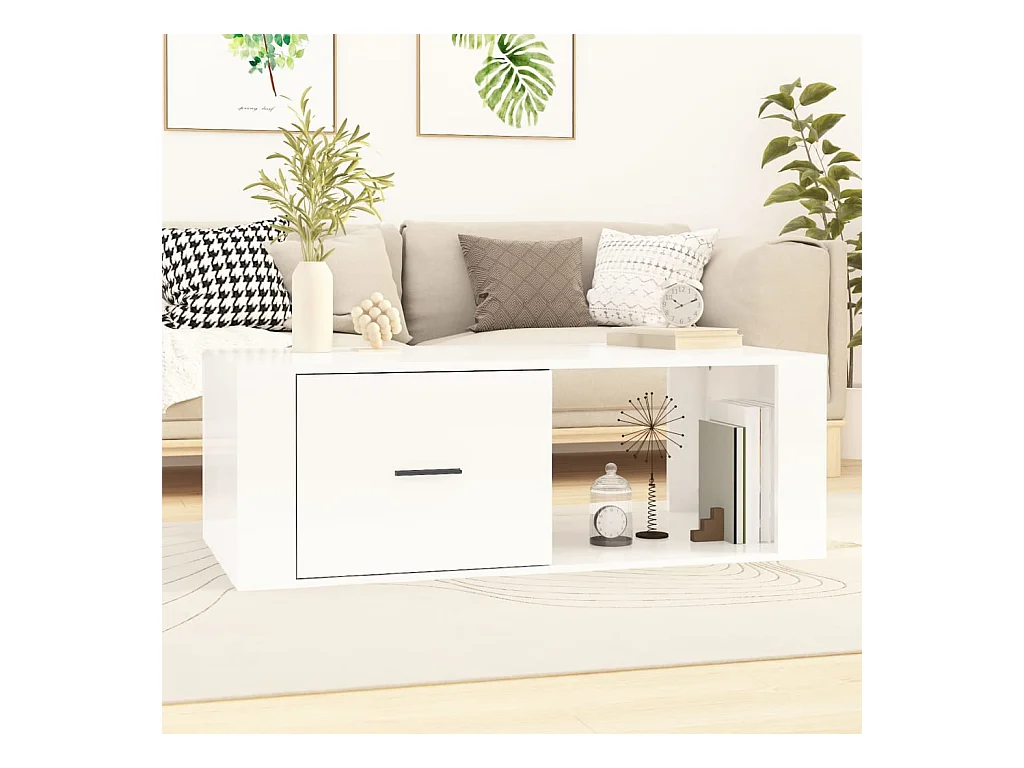 Couchtisch Beistelltisch Hochglanz-Weiß 100x50,5x35 cm Holzwerkstoff -MN12625