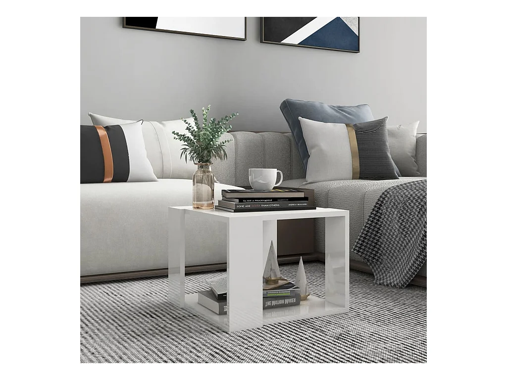 Couchtisch Beistelltisch Hochglanz-Weiß 40x40x30 cm Holzwerkstoff -MN62579