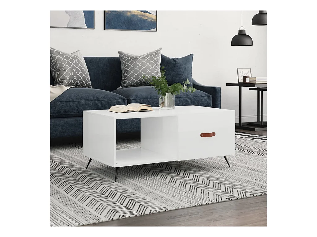 Couchtisch Beistelltisch Hochglanz-Weiß 90x50x40 cm Holzwerkstoff -MN55152