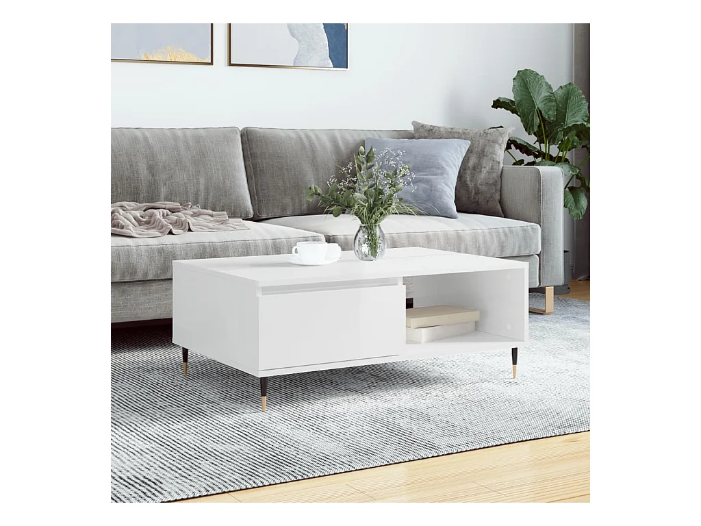 Couchtisch Beistelltisch Hochglanz-Weiß 90x60x35 cm Holzwerkstoff -MN66443