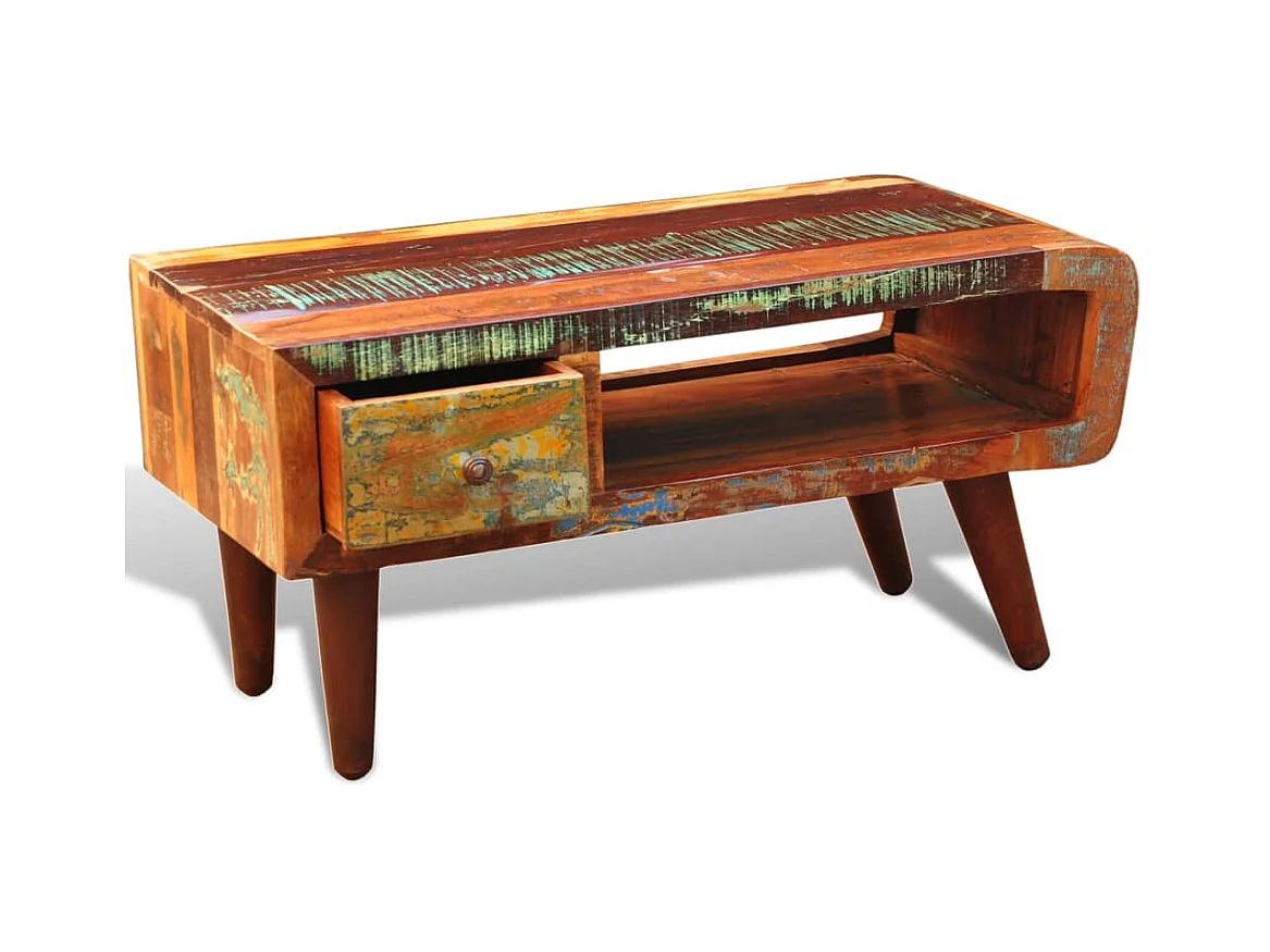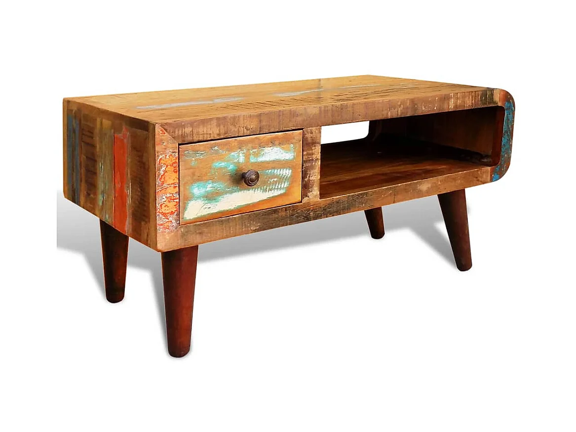 Couchtisch Beistelltisch mit Abgerundeter Kante 1 Schublade Altholz -MN86245