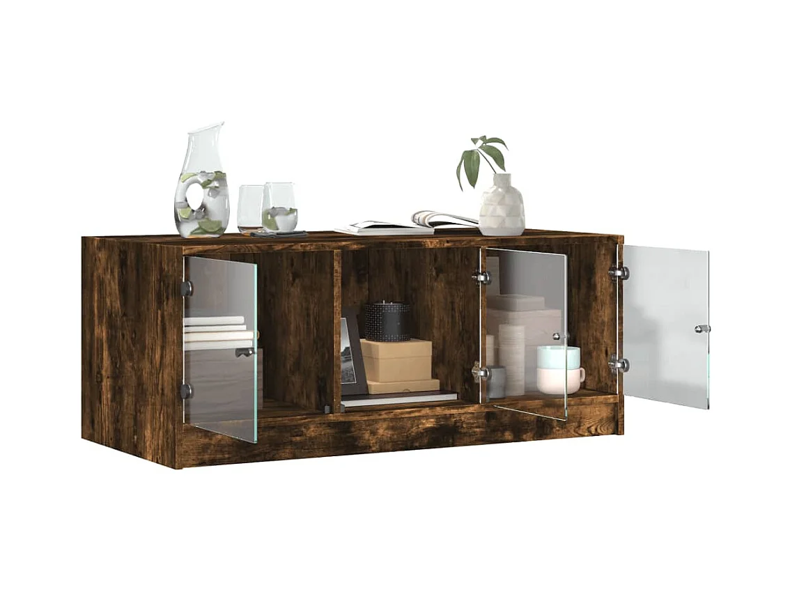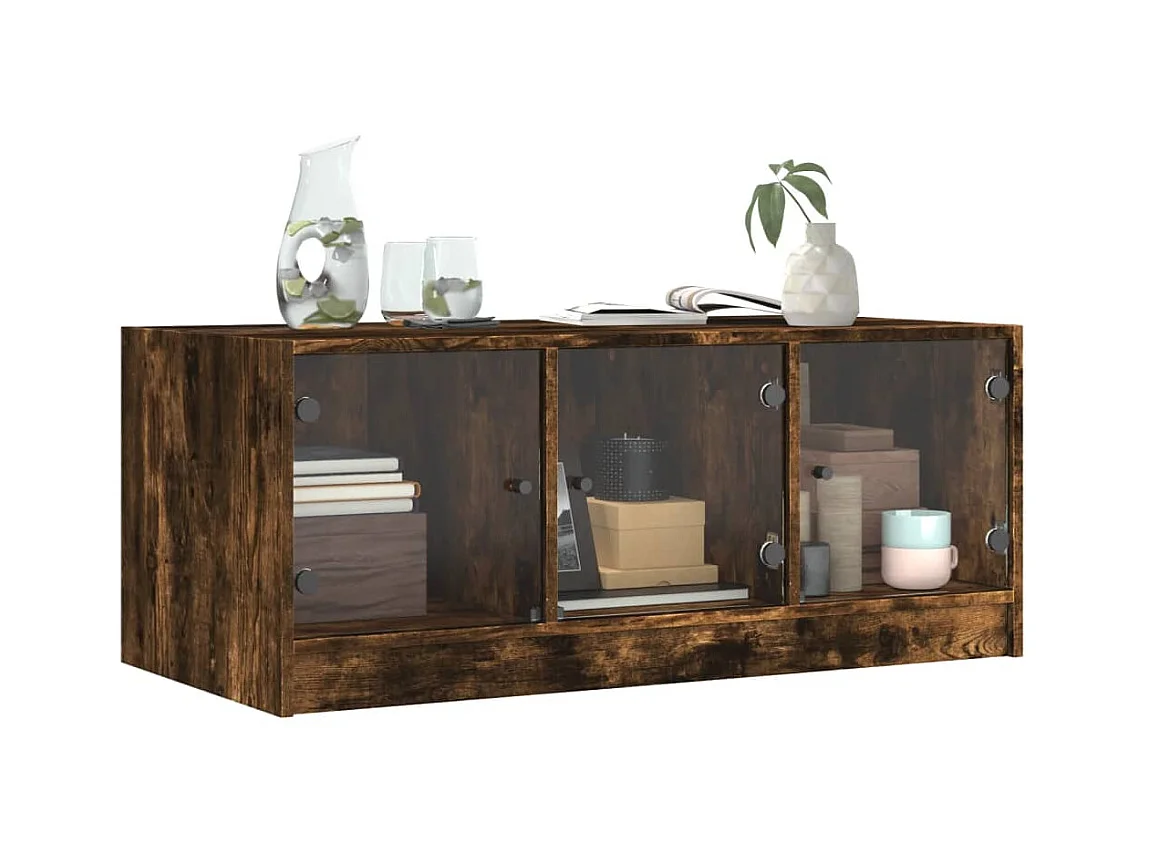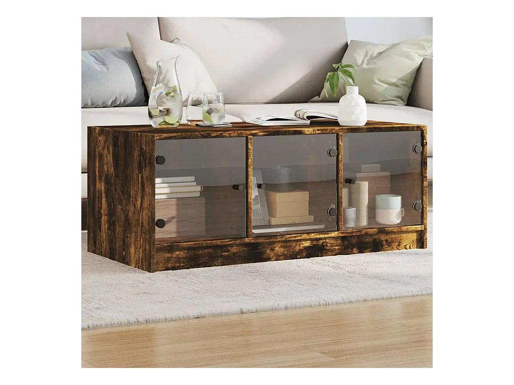 Couchtisch Beistelltisch mit Glastüren Räuchereiche 102x50x42 cm -MN65003