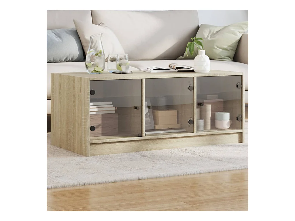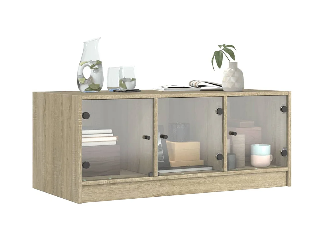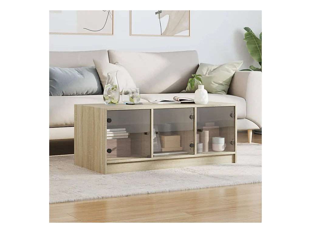 Couchtisch Beistelltisch mit Glastüren Sonoma-Eiche 102x50x42 cm -MN64068