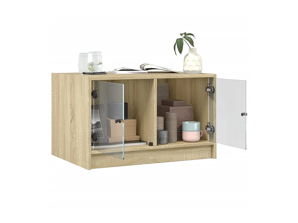 Couchtisch Beistelltisch mit Glastüren Sonoma-Eiche 68x50x42 cm -MN57990