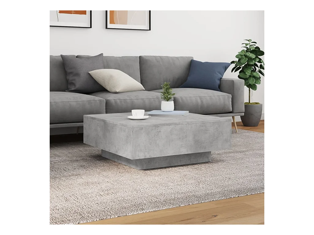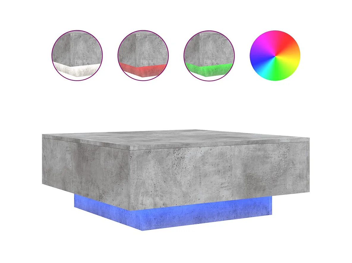 Couchtisch Beistelltisch mit LED-Leuchten Betongrau 80x80x31 cm -MN97760