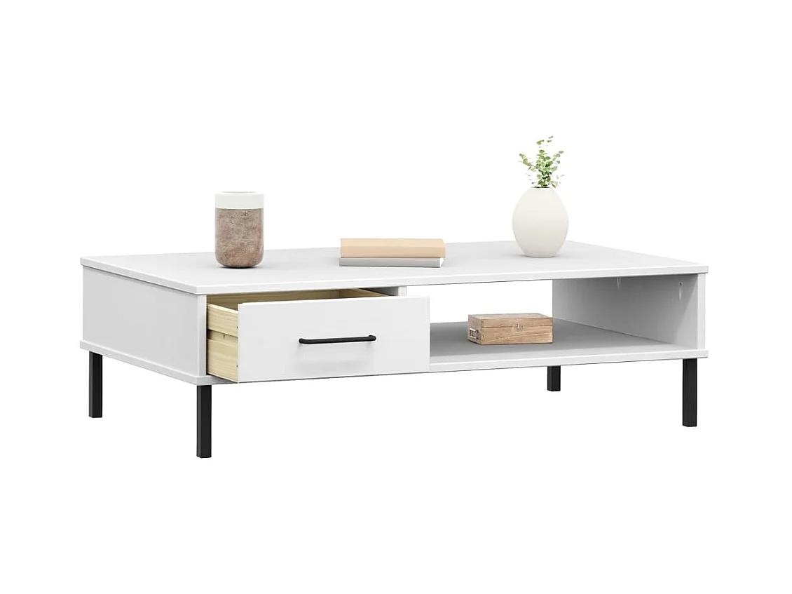 Couchtisch Beistelltisch OSLO mit Metallbeinen Weiß Massivholz Kiefer -MN28283