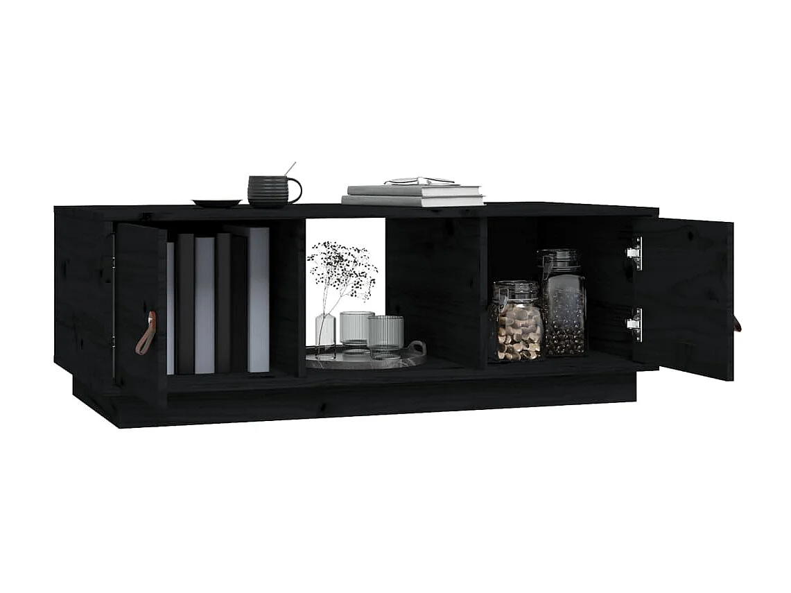 Couchtisch Beistelltisch Schwarz 100x50x35 cm Massivholz Kiefer -MN92162