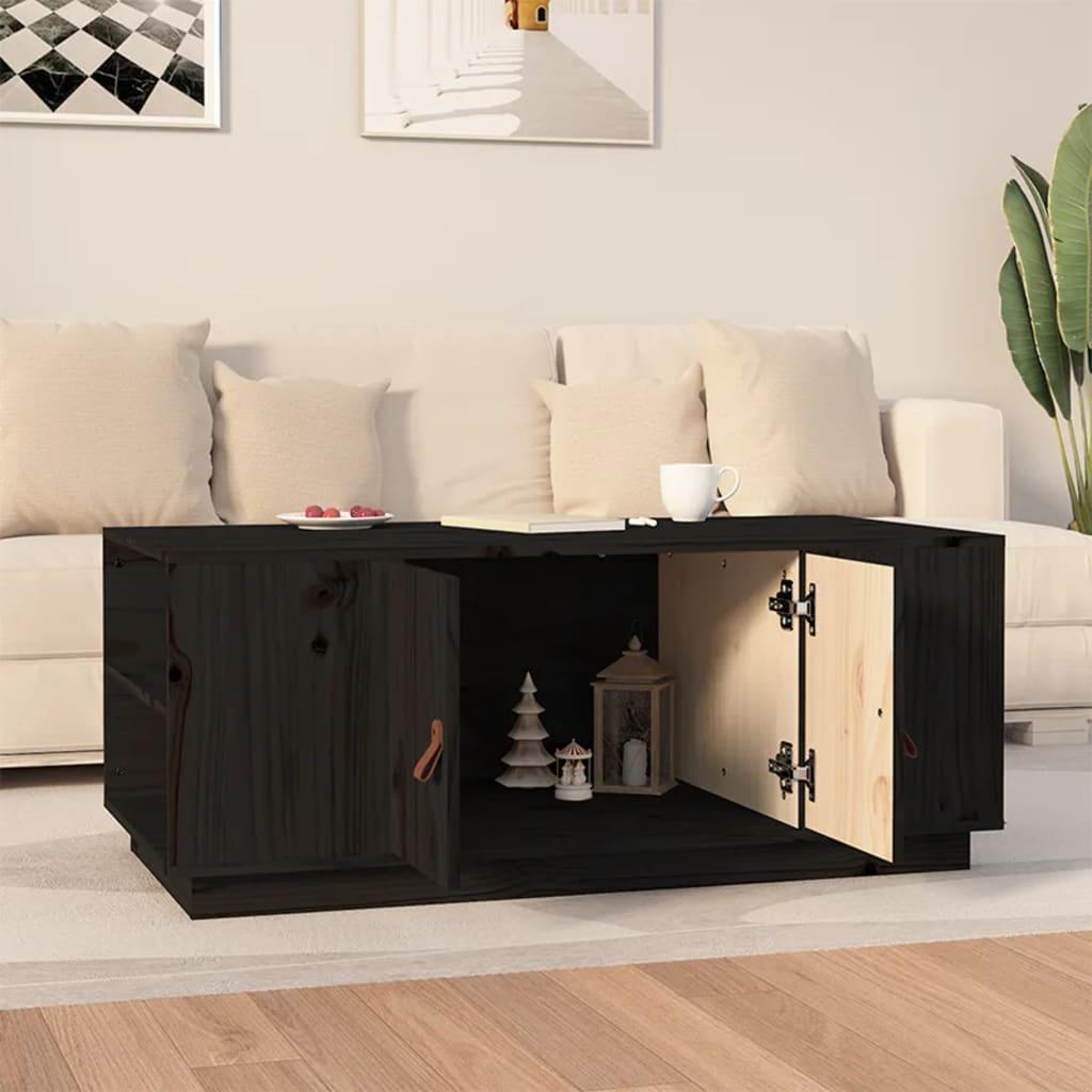 Couchtisch Beistelltisch Schwarz 100x50x41 cm Massivholz Kiefer -MN11372